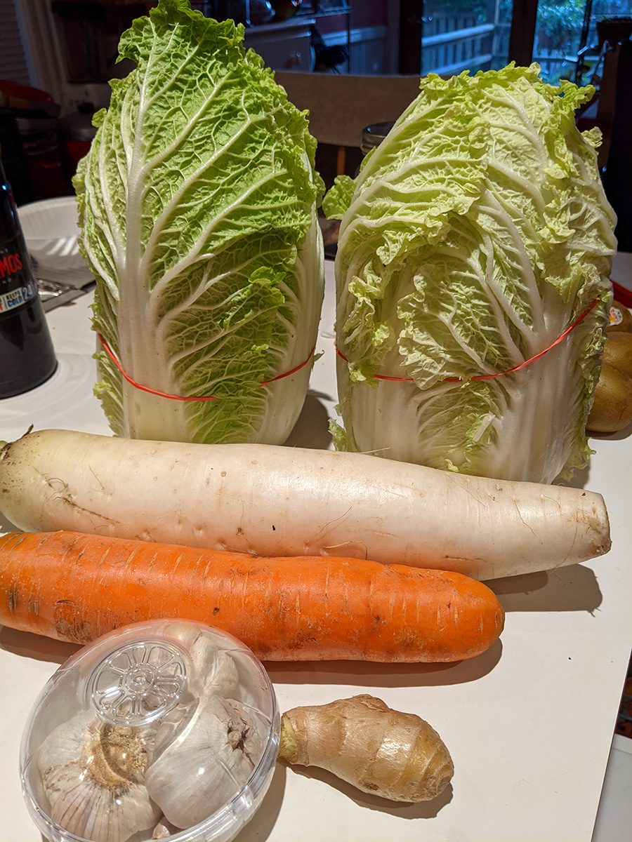 my mother wanted me to get a few things: napa cabbage, black sesame seeds, enokitoki mushrooms. i got a few packages of my usual sea salt sunflower seeds, some candied tamarinds, some dried ginger. napa cabbage was down to 50¢/lbs. so i got two big head of cabbage myself to made korean kimchi. i also grabbed a daikon radish and a carrot. the cashier told me i could save more if i bought another bag of sunflower seeds so i took her advice. before i left, i also bought some more face masks (non-surgical disposable 3-layer), 3 boxes for just $10.