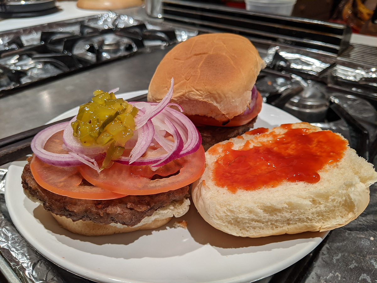 for dinner i cooked up two frozen hamburger patties in the foreman grill. i had two fans running to blow the smoke out of my kitchen. i timed dinner to coincide with the vice presidential candidate debate between kamala harris and mike pence.