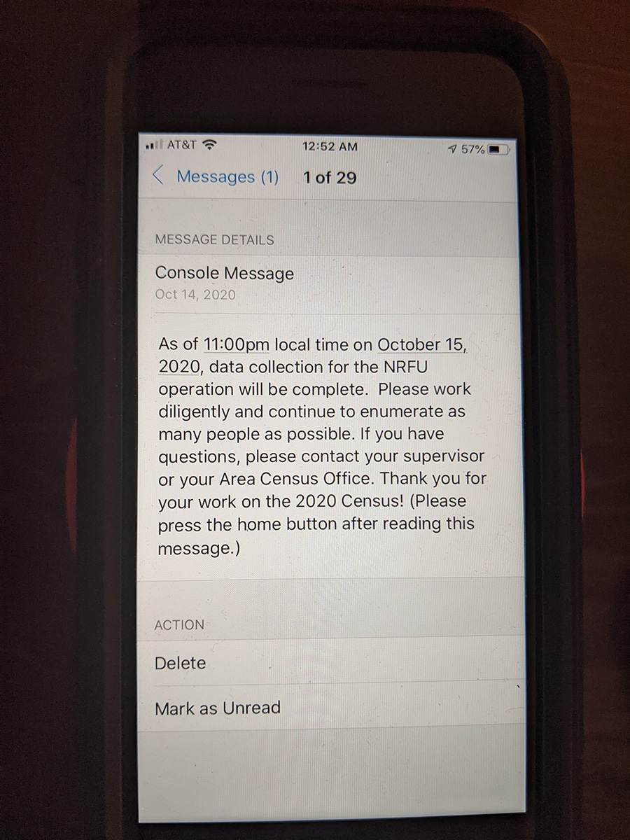 somebody came out and told us we could be processed inside. i follow the guy who was ahead of me and we went into the building. inside looked like a call center, desks and chairs and phones and a lot of people moving around. a man wrote down our names from our census id and asked us to wait in the lobby, which was just the space in front of the entrance, already crowded with two people. i decided to wait by the entrance foyer but that was a tiny area as well, before i was called back inside. it seemed very disorganized, which is the 2020 census in a nutshell. the pandemic took a major hit, and trump's meddling in the count was another.