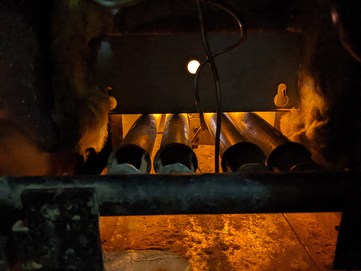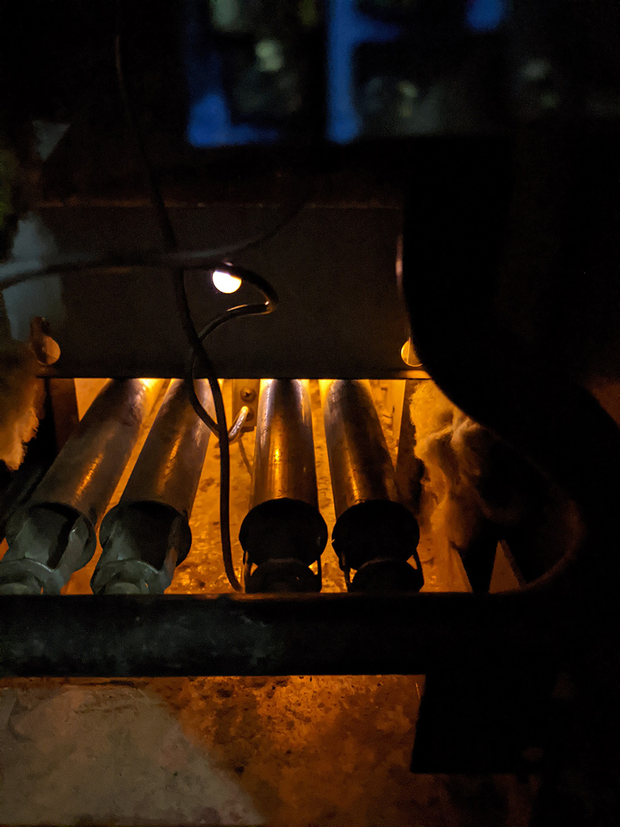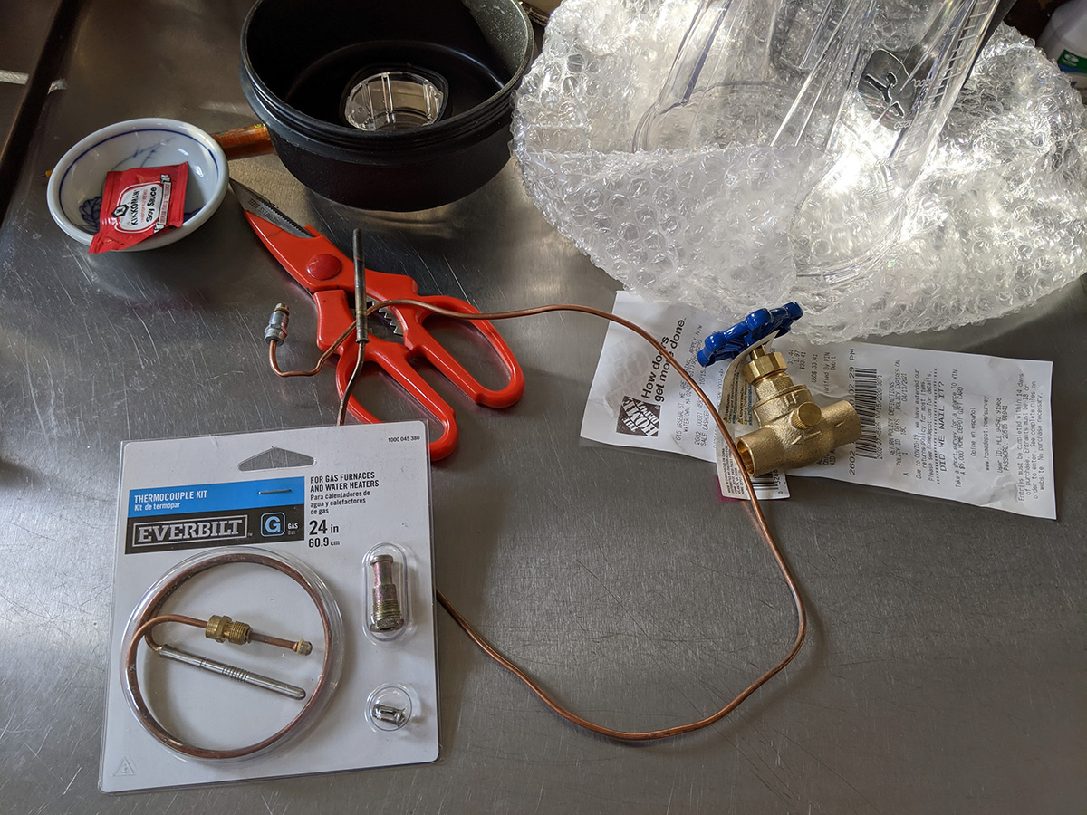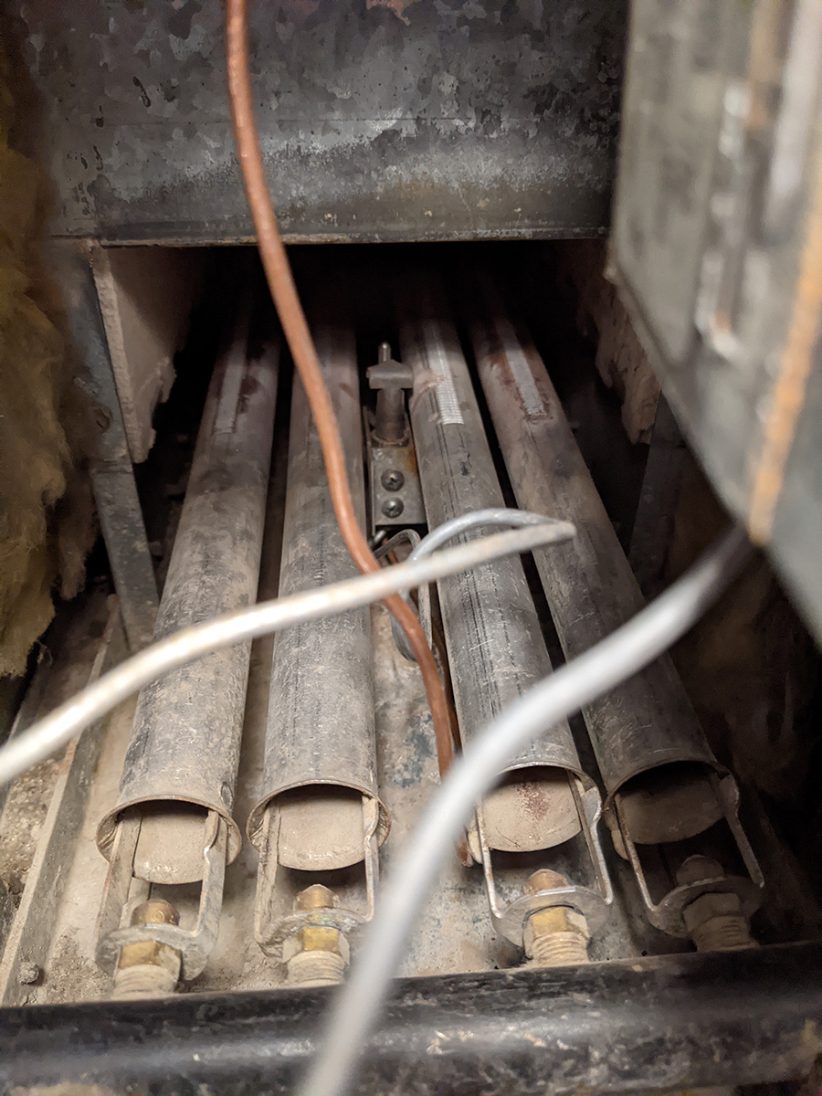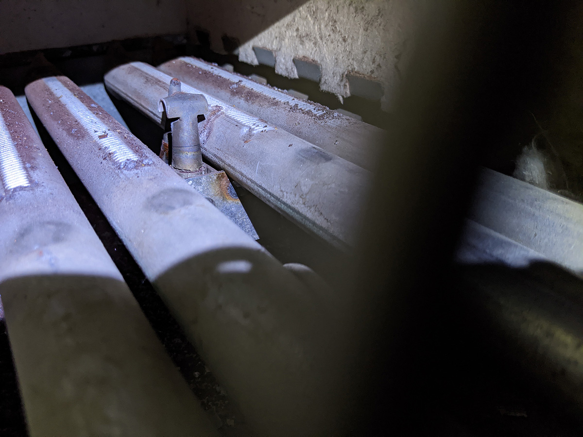 back at the cafe my father and i installed the thermocouple. it wasn't easy. something i realized was i should've gotten the 30" thermocouple as this one was a little short so we had to reroute how it went to the pilot light. my father and i disagreed on how to mount the temperature sensor of the thermocouple to the pilot light assembly. it came with a small clip-on adapter that took us the longest time to figure out how to mount. workspace was also tight, as we tried not to bend the metal gas feed tube too much. we also vacuumed the inside of the furnace, which seemed like it's never been cleaned before. there were mounds of rust colored sand at the bottom of the furnace, as well as inside the removable burner tubes. put everything back, it was my father who saw i'd put the burner tube with the pilot light assembly in the wrong order. once everything was back in place, we lit the pilot light. this time it stayed lit. i went upstairs and turned on the nest thermostat. the furnace turned on (after we put the switch from pilot to on). so everything seems to work now.