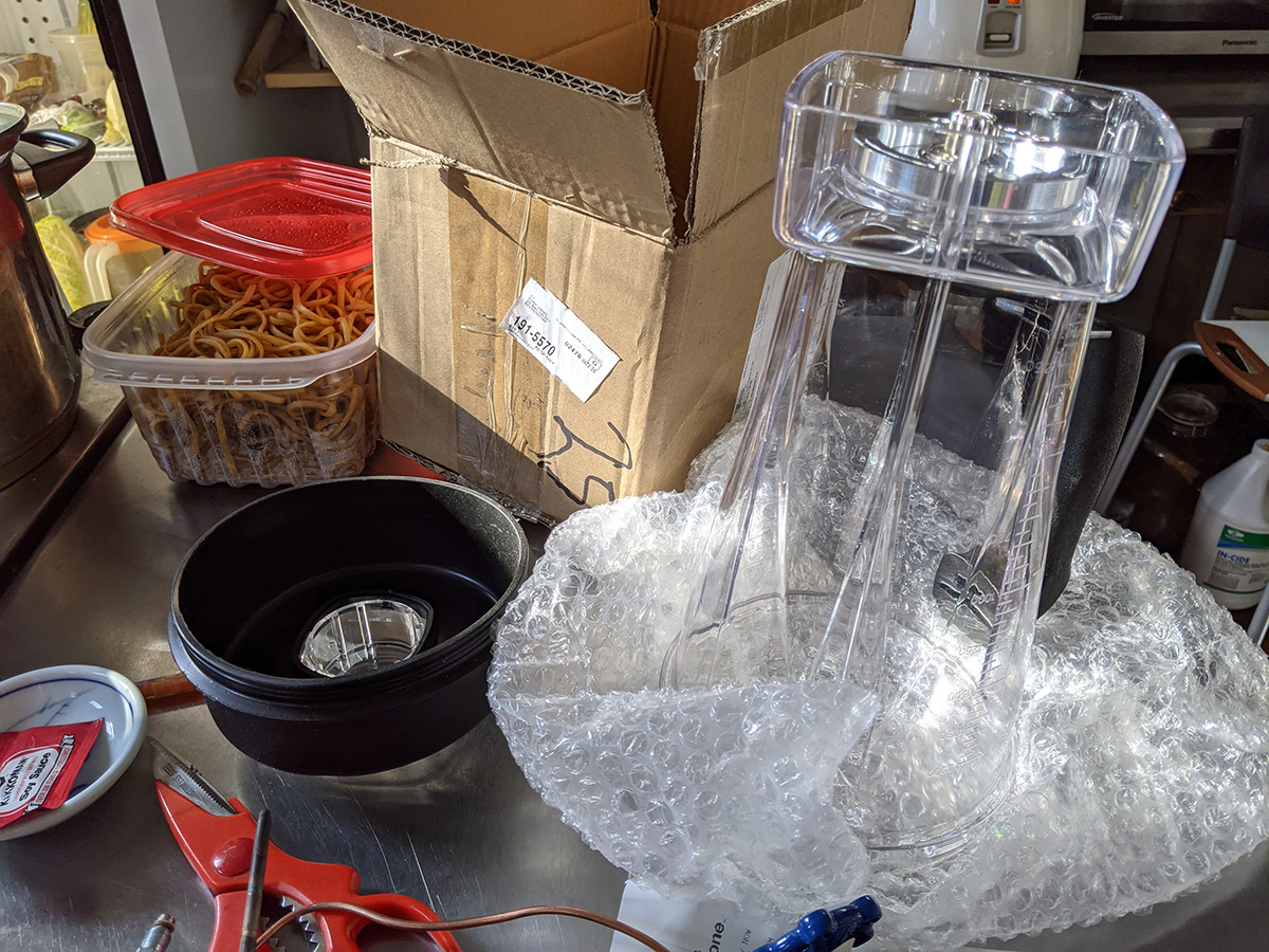 coming back, i made a stop at my parents' place because our replacement vitamix knockoff container had arrived. i just wanted to make sure it was the entire container (container, lid, blade assembly) and not just the container portion. it seemed legit. the plastic seemed solid, not sure if it's tritan (probably not) but doesn't seem like it'd shatter if it fell on the floor. it came with a 6-blade assembly, not the 4-blade that was shown in the listing, but we actually prefer the 6-blade. the blades were also pointed instead of flat, and the edges were serrated. one thing that's missing are air holes at the bottom of the container, which our real vitamix container had. it doesn't matter for cold blends but the air holes seem important for long duration high speed hot blends.