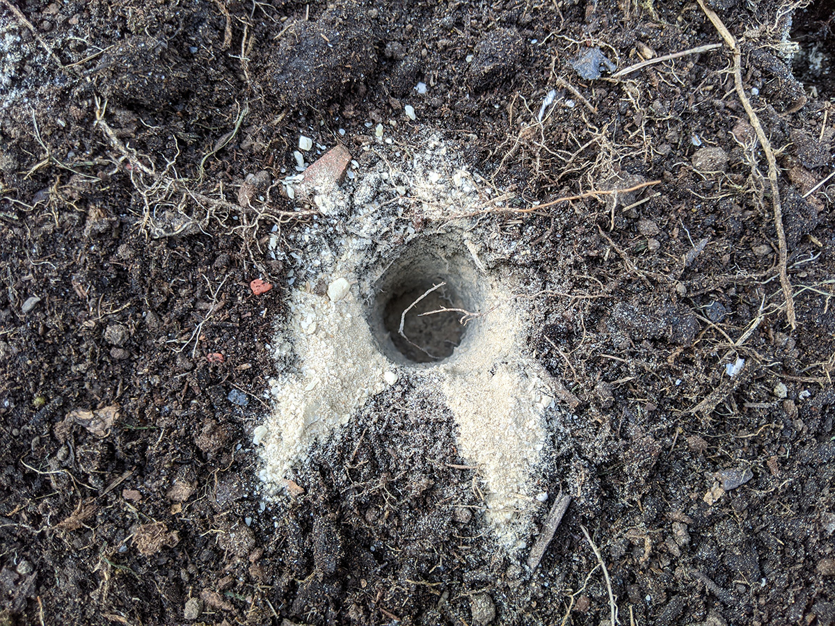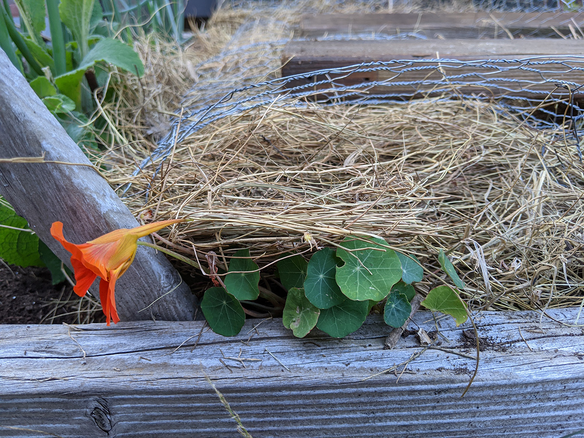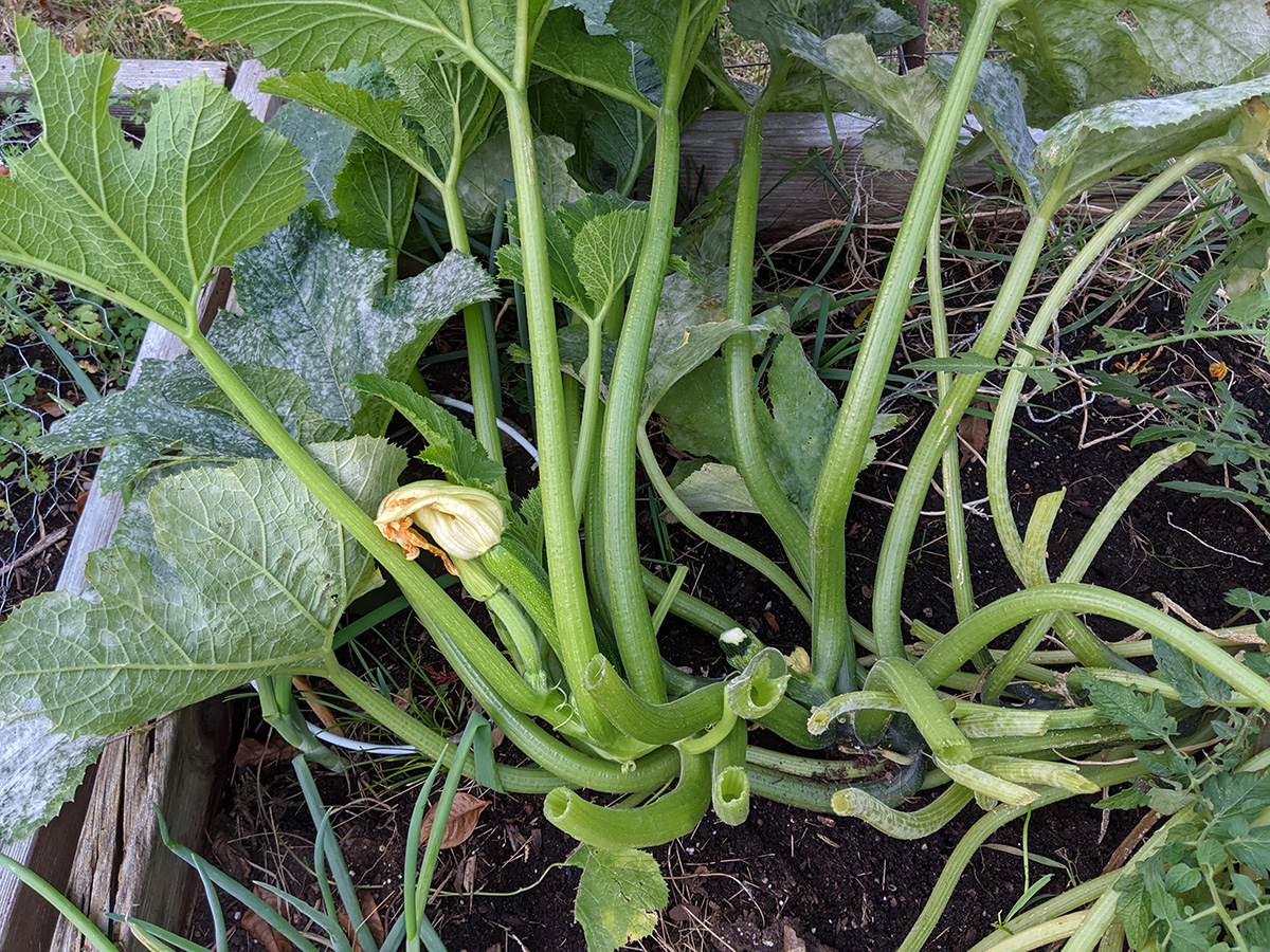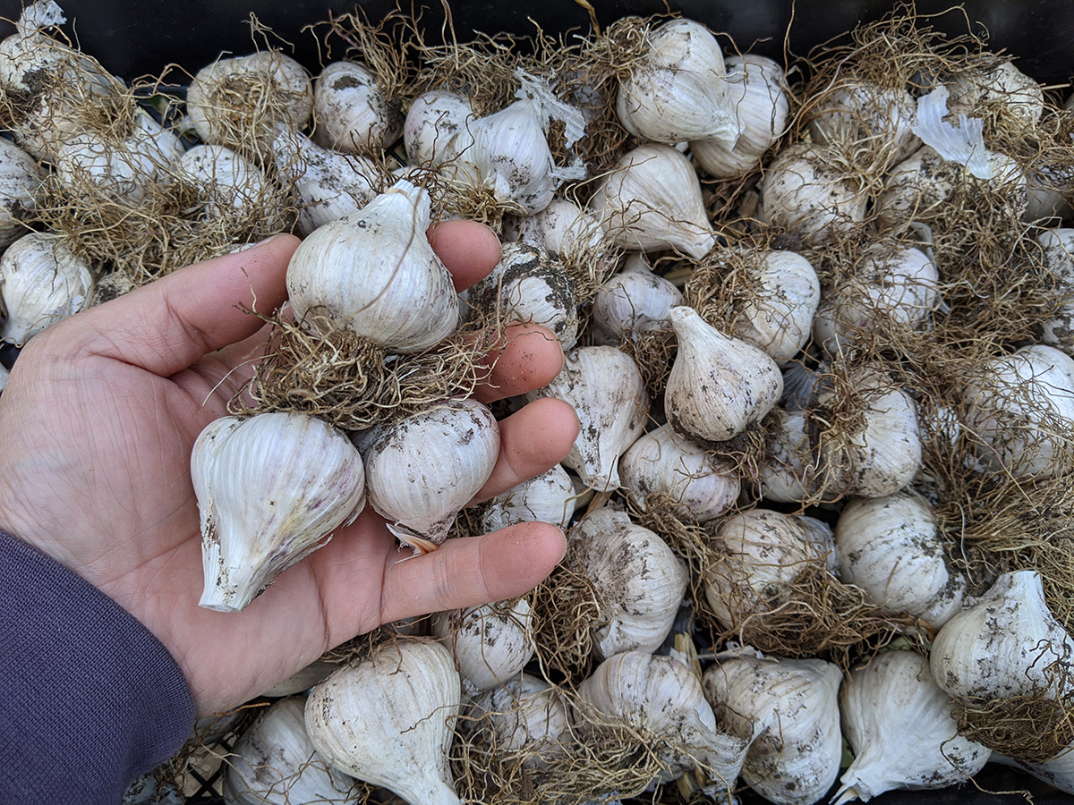 after the game was over i came back outside and sprinkled some espoma garden food (10-10-10) into the garlic bed before raking it into the soil. using the handle of a trowel, i made about 100 holes in the raised bed, each 3" deep and 6" apart. i then snipped off the garlic stems (curing since early july) and collected the largest garlics for growing. though these garlics were small, some of the individual cloves were large, so there still may be hope that i could get some big garlics next season. into each hole i added some bone meal before planting the cloves. so hopefully by next july i might expect to see some garlics. this is my third planting; if they're still not doing well i'm going to give up on growing garlics.