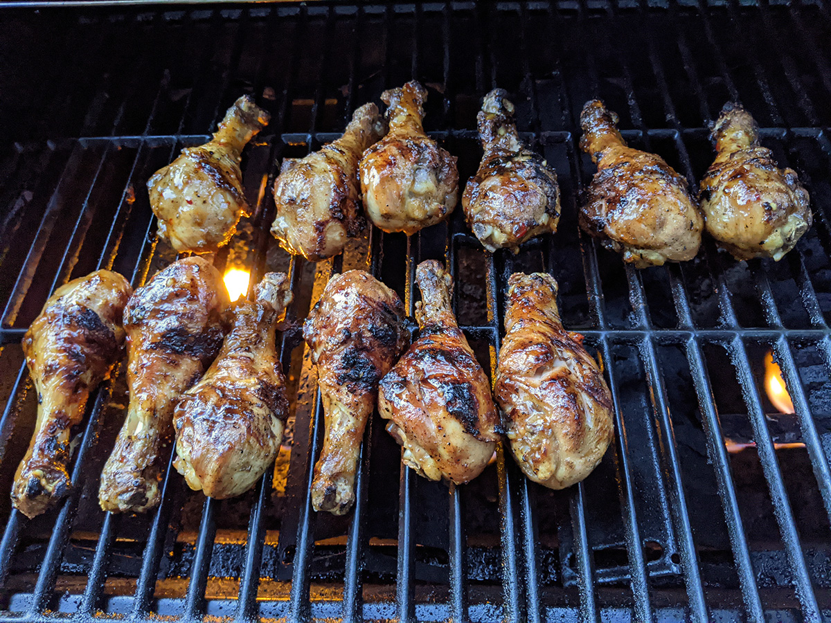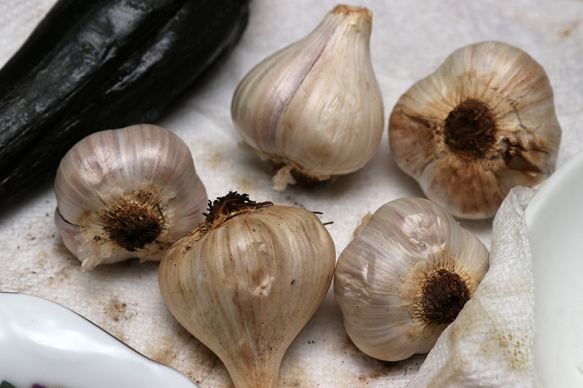 my mother was exclaiming how delicious the drumsticks were. the secret is high heat to crisp up te outside, followed by low heat to cook the inside, before putting on the sauce (a sweet thai chili sauce) and cooking for a few more minutes. just for kicks, my father roasted one of my leftover garlics. it tasted pretty good, the spiciness of the garlic subdued, tasted a little like roasted chestnut, or a baked potato with a garlicky sweetness. we ended up roasting a few more garlics.