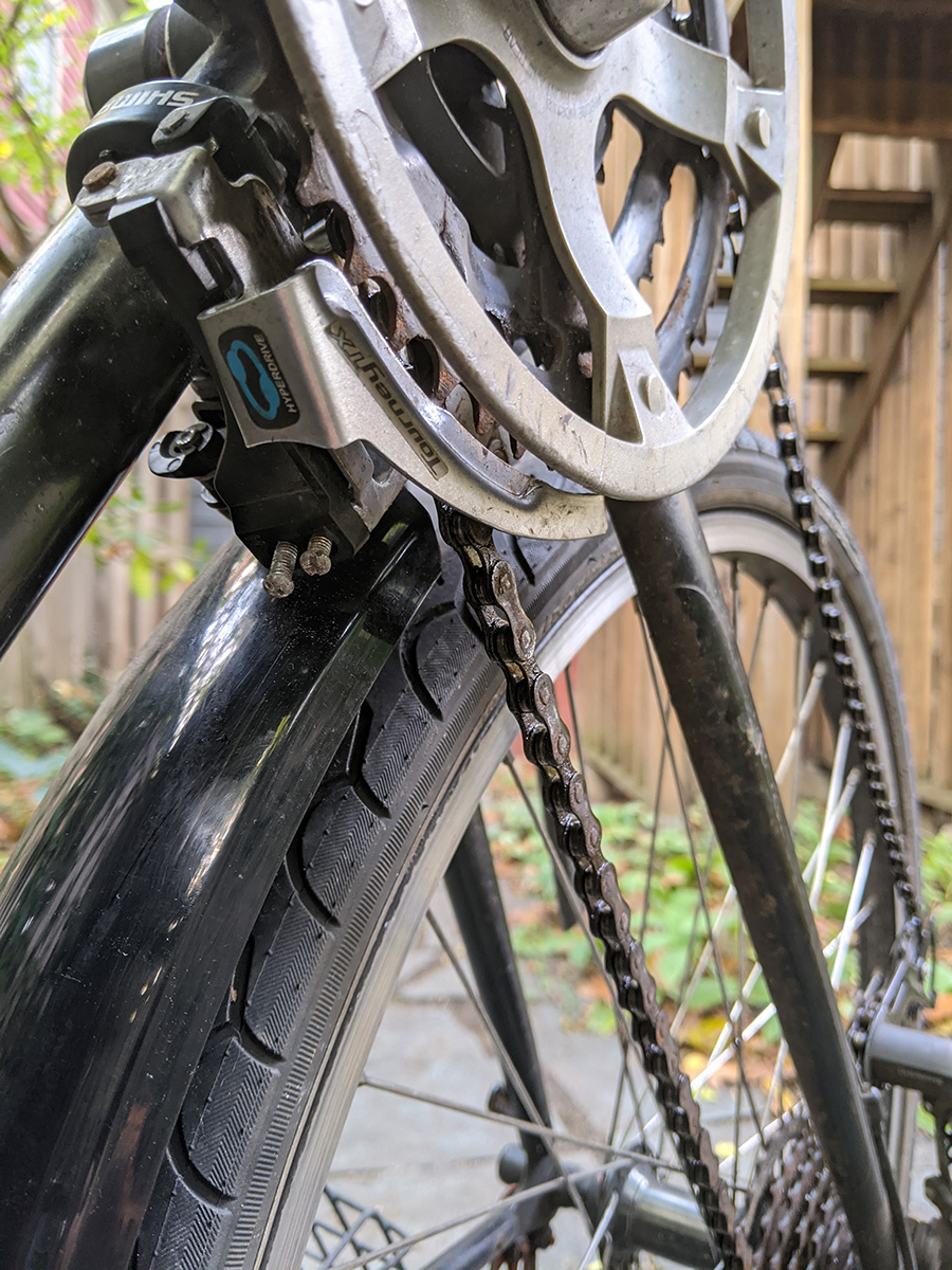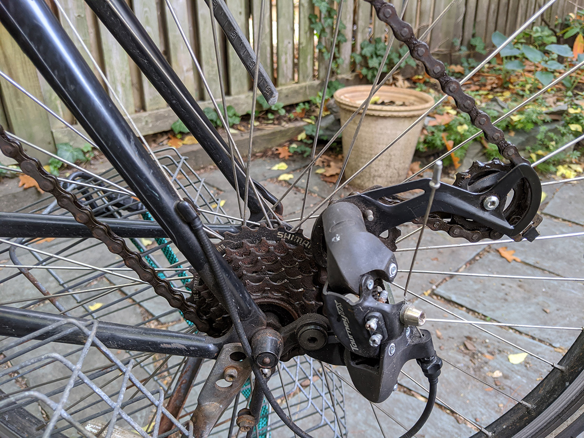 i had some time to adjust my rear and front derailleurs. my rear cogs keep on skipping on the cassette. turns out it wasn't a derailleur issue, but rather some string (the same string i found on the street that i used to remove my old macbook pro battery) that gotten wrapped inside the cassette. i don't know if it fixed it because the chain skip issue seemed like it predated the wrapped string, but i won't know until i give the bike a longer ride. i then went to work on the front derailleur, which has never worked. at most i can switch between two chainrings, but usually i ride in the middle chainring and make small adjustments on the rear cogs. i fiddled with it for a while, but i don't think i made any progress. i took the bike out later for a short ride on flat surface, seems like i can only use gears 5-6-7 with the middle chainring, any other setting and there's chain rub. i'll take a look at it again next week.