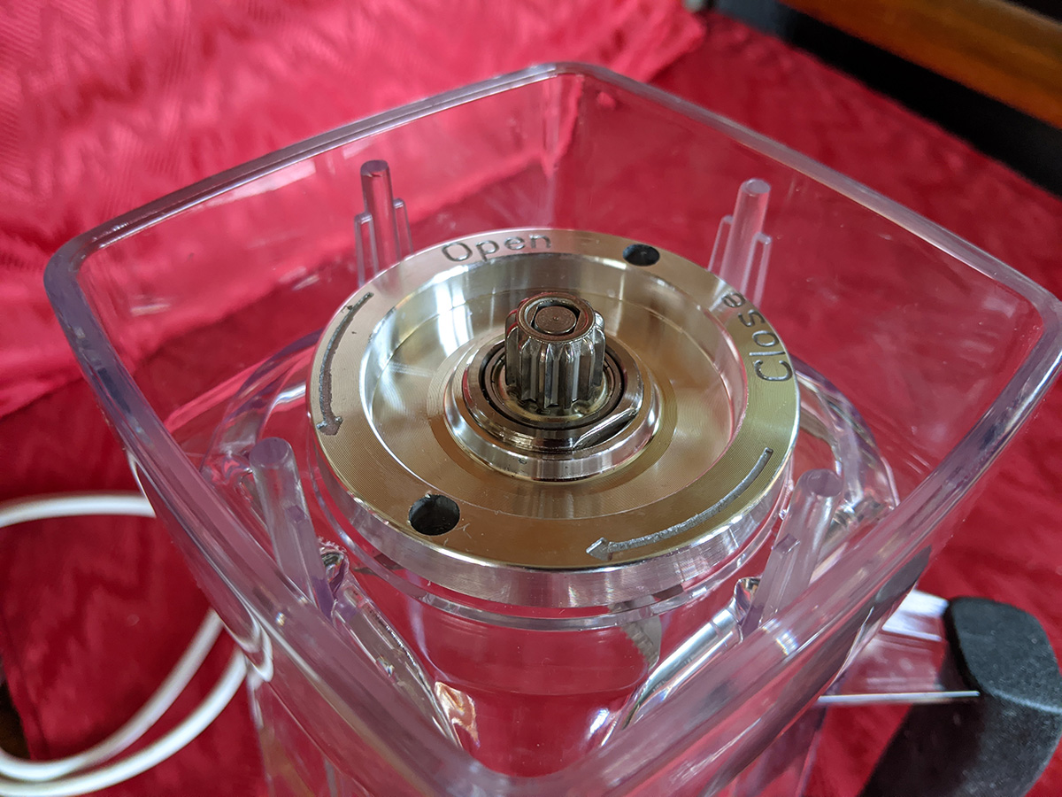 my father noticed a difference between the old vitamix container and the new knockoff one we got. besides having different baseplates (the vitamix has a beefier metal base, almost like an anchor, while the newer one has a thinner stainless steel base plate), the "shaft cog" on the vitamix sits lower so it pairs better with the drive socket than the newer container. the cog on the newer container sits about halfway in, while on the old container it sits completely in.