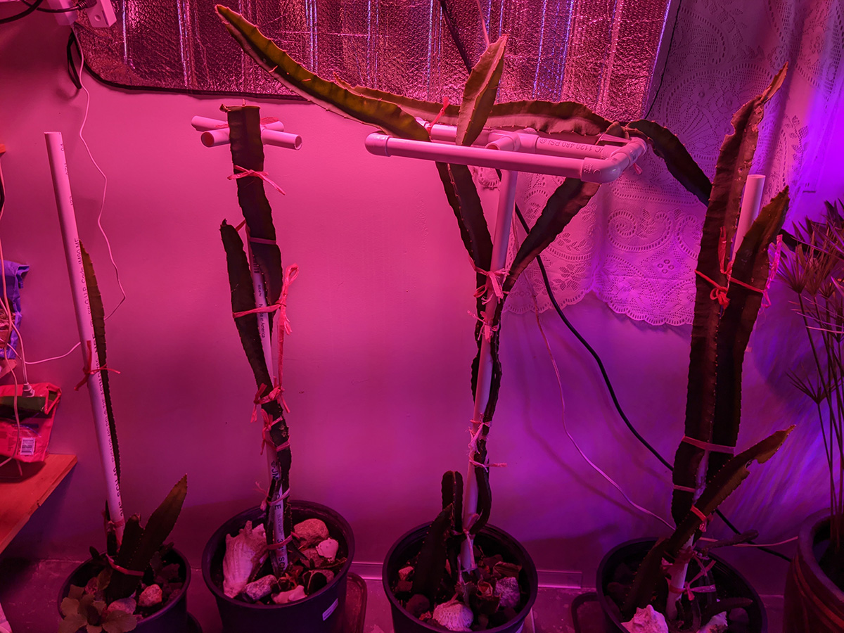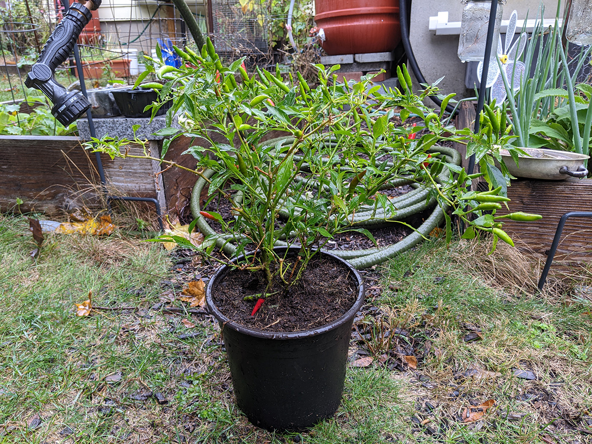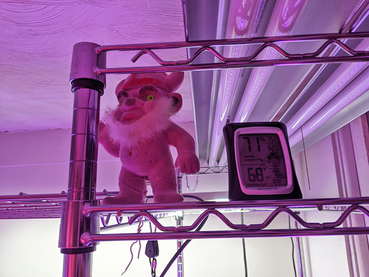 i dug up another thai chili pepper plant plus our thai basil. from last winter, pepper and basil seem to attract aphids. my father didn't want to keep them, but it'd be a waste to leave them outside to die. we'll keep an eye on them, the first sign of aphid infestation we'll toss them outside. i will use the knowledge i gained from battling indoor pests last winter, as well a few new tricks (like neem oil). my goal is to have zero pests this time around. i sprayed both plants with insecticidal soap before moving them into the grow room.