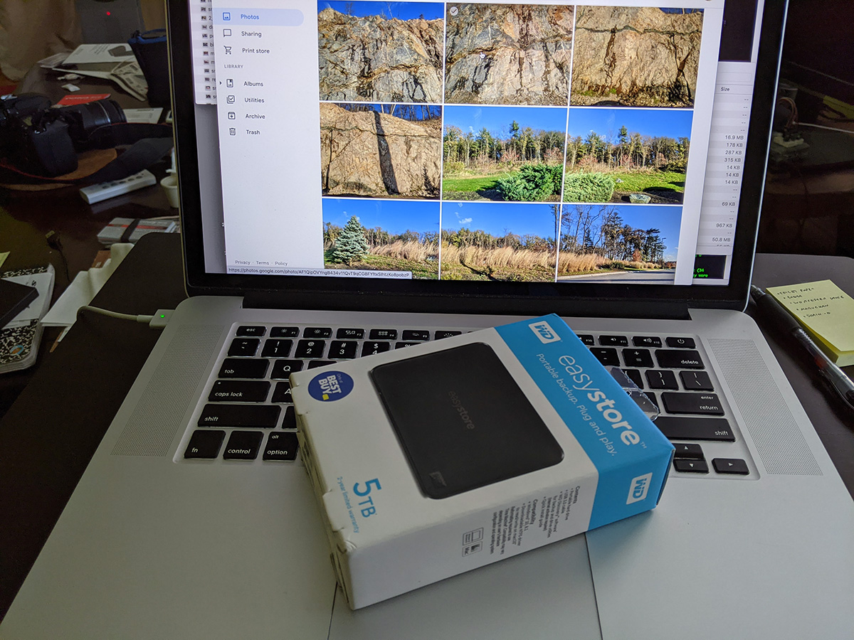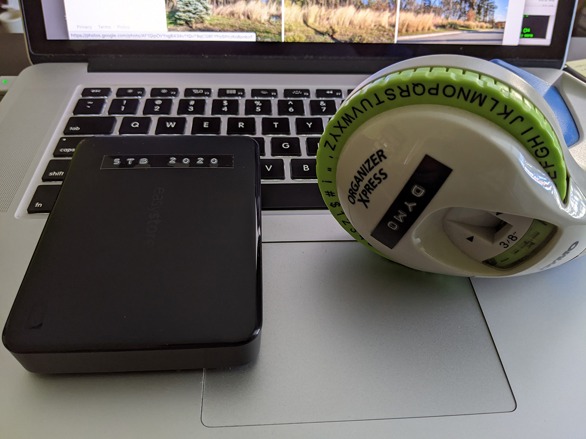my 5TB western digital external hard drive ($90) came today from best buy. turns out this particular model is a best buy exclusive. it looked a lot larger in the photo (thicker) but it wasn't that bad. as tradition, i made it an embossed label, "5TB 2020". i will use it to back up my photos.