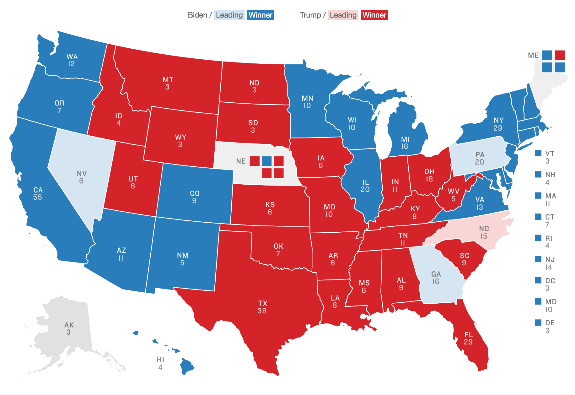 too many days i've spent idle, today i was going to make up for it by being ambitious and try to get as many things done as possible. first thing i did in the morning was to check the vote count. as predicted, pennsylvania turned blue for biden. likewise so did georgia. nevertheless, the margins are so narrow, even if these states were to finish their counts, there'd be a recount, so it'd take a while more before the winner will be officially announced. but it feels good seeing PA and GA in the blue column, to have confirmation that biden will eventually be the next president of the united states once all the votes been counted.