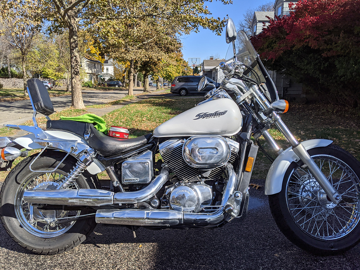 11:15am i left for belmont to wash the motorcycle and bring out the jasmines as we'd be having 6 days of unseasonably warm weather. i hooked back up the on-demand pump and connected the hose in front of the house. i also washed the honda element while i was at it. after i waxed the motorcycle and left it to dry, i started moving out the houseplants. i then buffed off the wax and returned to cambridge.