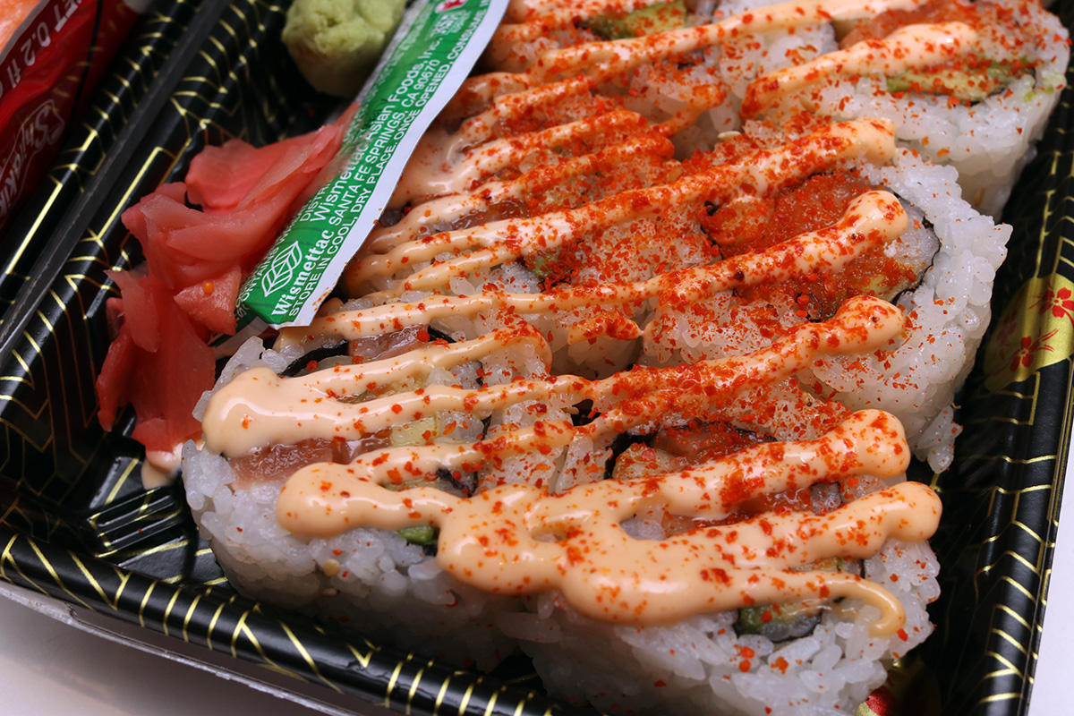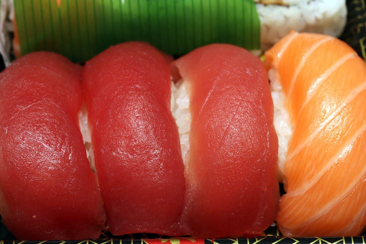 i was prepared for a nice quiet evening of meat sauce pasta for dinner, but my mother called me in the early evening, said their friend (suming-ayi) stopped by the cafe and brought along some sushi. my parents were doing to drop it off at my place after giving my 2nd aunt a ride back to her apartment. so i ended up having sushi for dinner instead. there was a lot of sushi, i would've been fine with the spicy avocado salmon roll, but i also got a box of nigiri as well (raw fish on top of rice).