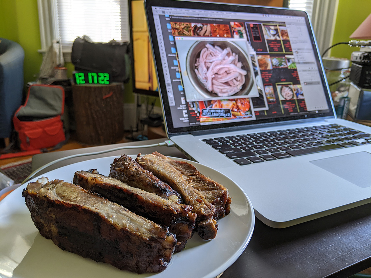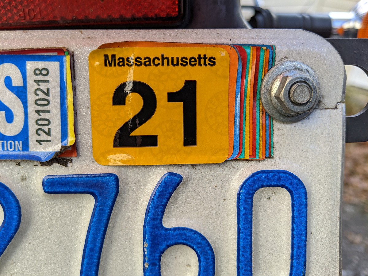 today was street cleaning on the other (my) side of the street but they didn't start until the early afternoon. that gave me enough time to go outside and rake the sidewalk leaves onto the street. i also put on my new 2021 registration sticker (yellow). for lunch i heated up 4 pieces of leftover ribs. these were the end pieces that contained a lot of pork fat and afterwards i felt a little gross.