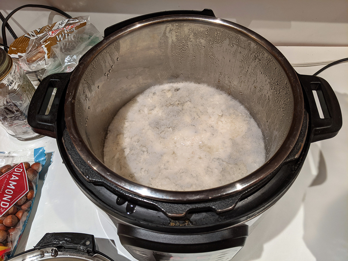 and when i bravely gave the rice a taste test, it tasted sour, with no hint of sweetness or alcohol. there was no yeast ball fermentation at all. it's as if i left the rice outside in the heat and it naturally got moldy after a day. i didn't want to give up though, so i set the instant pot for another 30 hours of low yogurt heating, figured i'd check on it again later tonight, but i wasn't optimistic it was going to get any better. i think maybe my yeast ball was too old and lost its potency. when the yeast ball doesn't grow fast enough, other bacterias take its place i don't get jiu niang.