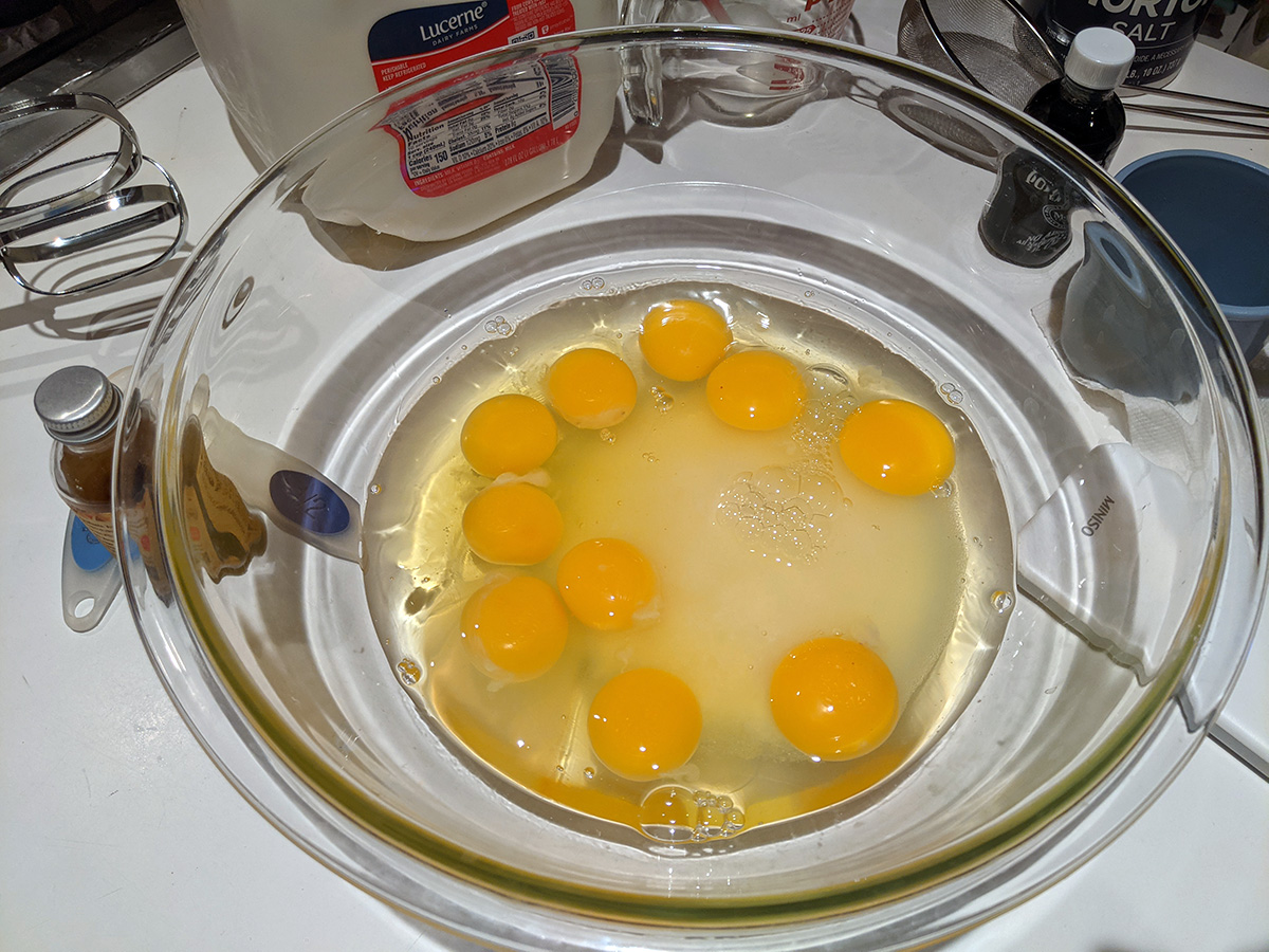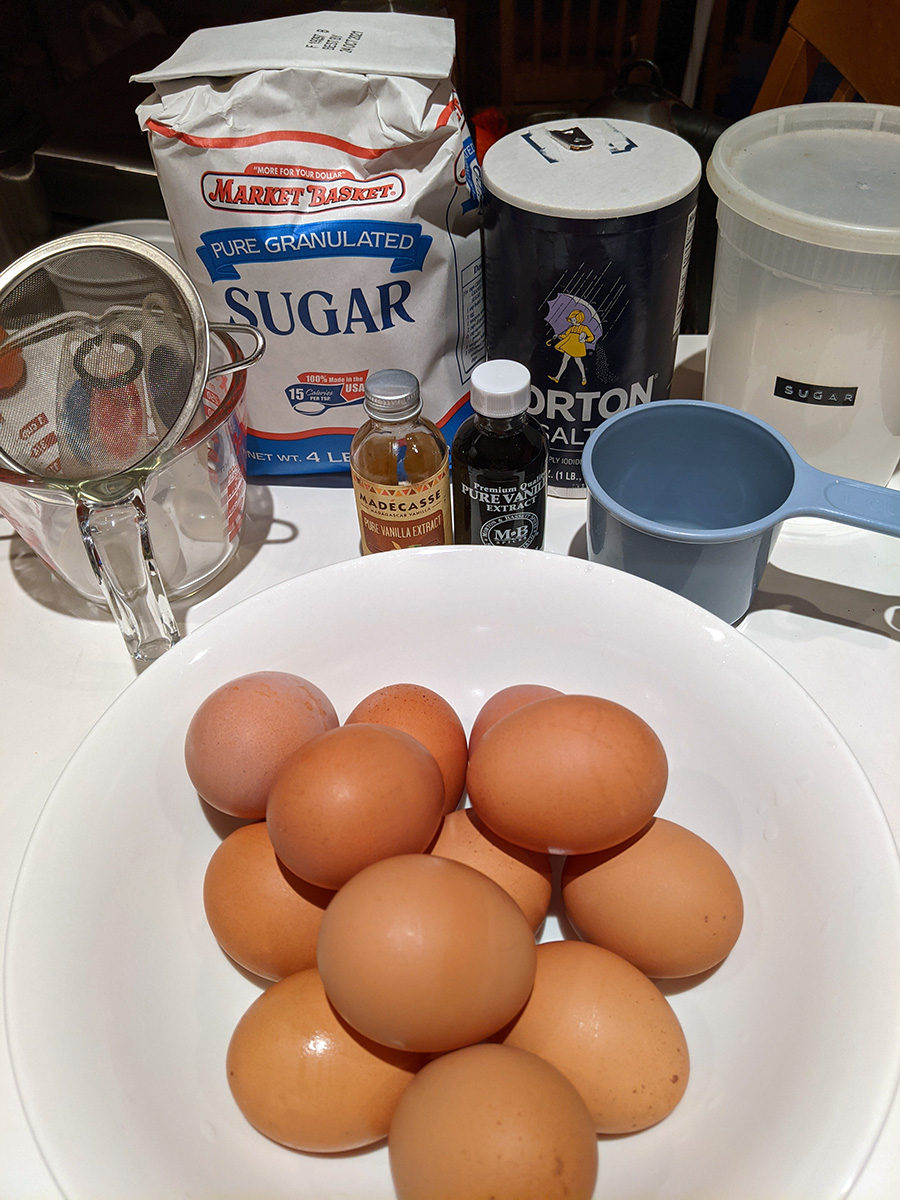 10 eggs 1 cup sugar 1/2 tsp salt |