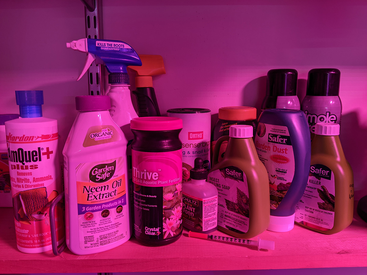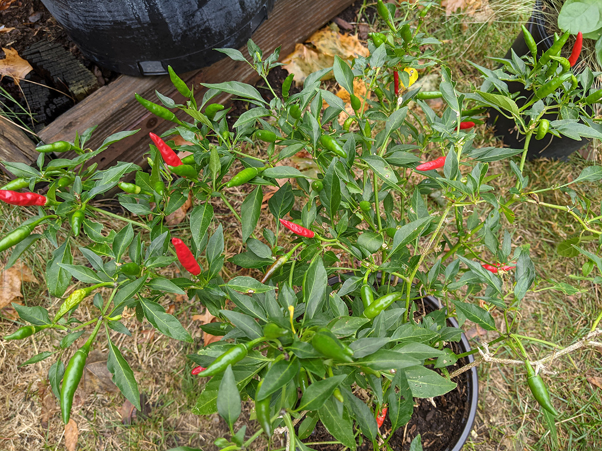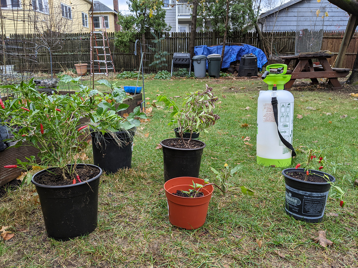 later in the afternoon - when the rain had stopped - my father helped me bring some plants outside so i could spray them with neem oil. these includes some small potted jasmines, thai chili peppers, thai basil, and the toothache plant. i like to spray outside so the neem oil doesn't get everywhere.