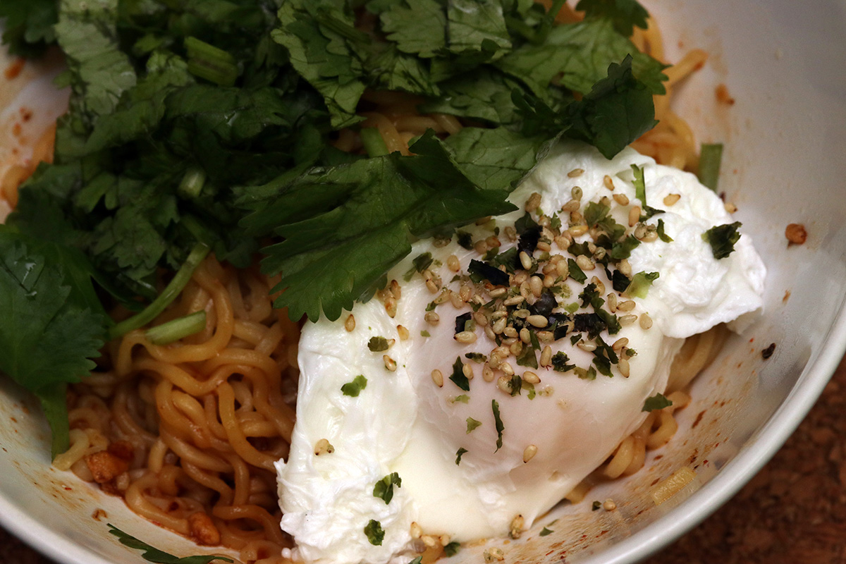 with thanksgiving just tomorrow, i'm still trying to eat light. for lunch i had a very sour (mostly likely expired) blueberry greek yogurt. i got hungry enough in the early evening to have a nissin instant cup of noodles. i remember i didn't like it the first time, but i think it was because i was using lukewarm water. this time around i used boiling water, and the noodles came out great, very similar to maruchan, i could hardly tell the difference. then for dinner i made another indomie mi goreng noodles with a poached egg.
