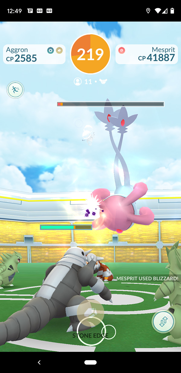 frances asked me if i wanted to do a remote raid with her in oslo, to capture a mesprit. she invited so many people, we won the raid especially. i had 14 pokeballs to use on the mesprit, all of which failed. frances was kind enough to set up a second mesprit raid. once it was defeated, i was given 15 pokeballs this time. once more, i failed to capture the mesprit. the only good thing that came out of that is i used the screen recording feature on my pixel phone, recorded the final 40 seconds before failed miserably. the recording even captured me using some saucy language cursing the pokemon.