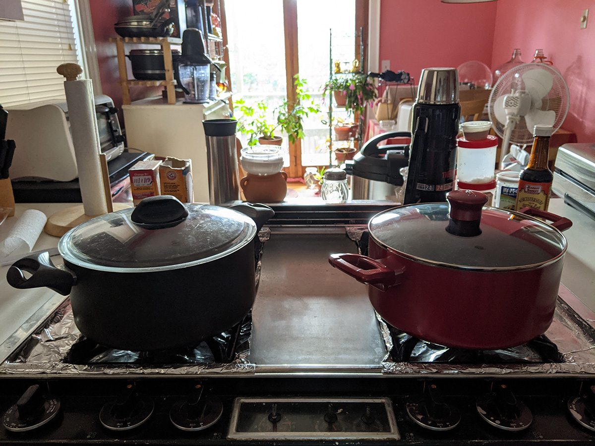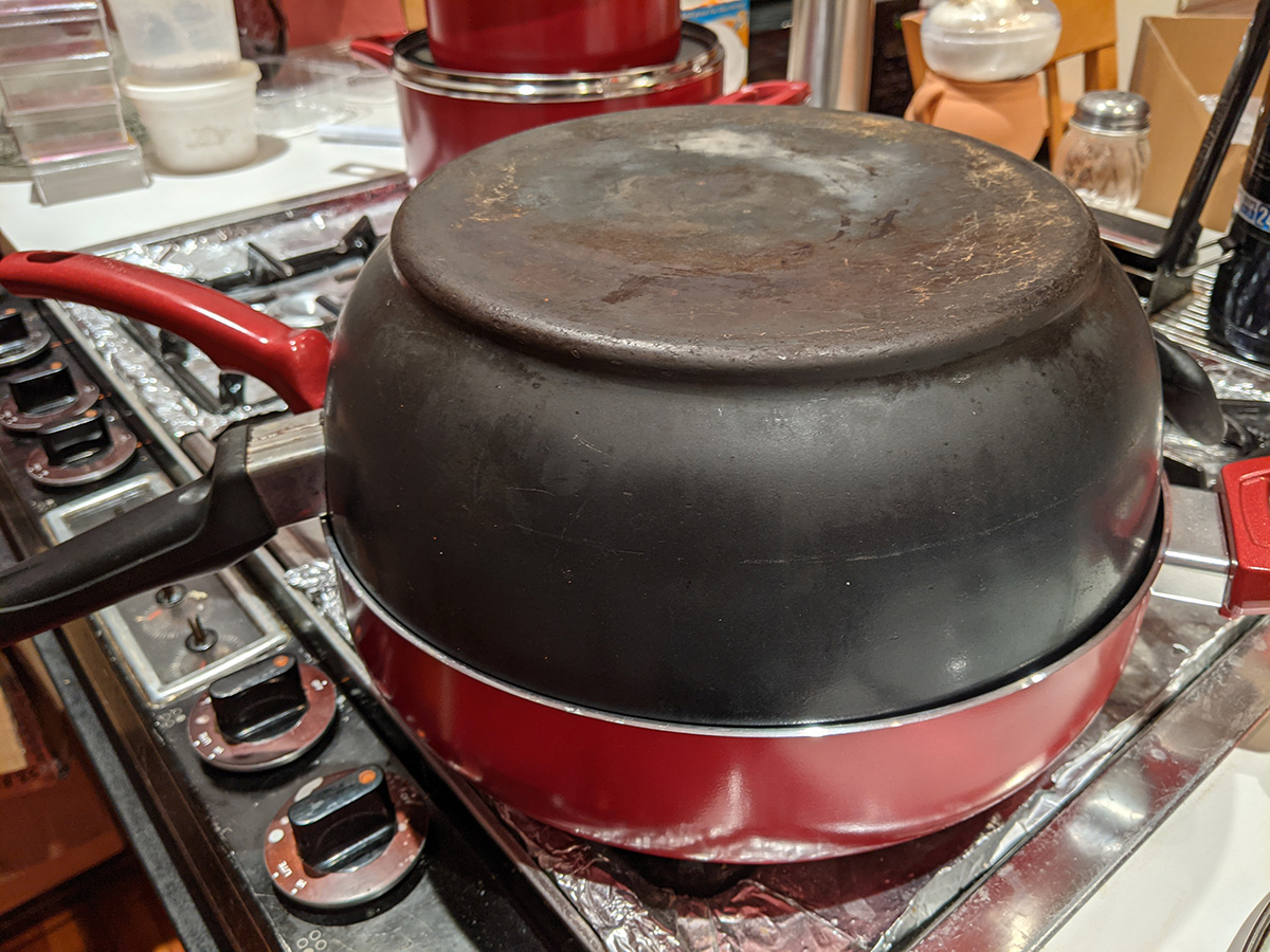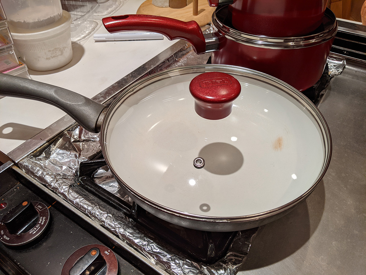 this buys me some time as i can slowly piece together my dream team cookware set: 1qt sauce pan (best size for instant noodles), 2qt sauce pan (for reheating leftovers), 5qt dutch oven (for soups), 6qt wok-style chef pan (the workhorse), 9.5" frying pan (that uses the same lid as the 5qt dutch oven), and a smaller sized frying pan that uses the 2qt lid. the lids have to be glass so i can see inside, and venting would be nice but not required. as for material, i'm partially to the stoneware that's all the rage these days with asian cooks (stoneware is the new ceramic).