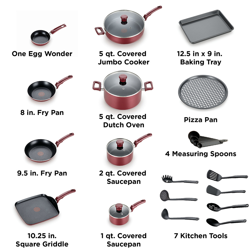 i'm still not sure the retail price for the 22-piece t-fal cookware set. when i revisit the walmart listing for the item, the price is still $50 though out of stock. on amazon.com the cost of the 5qt jumbo cooker with lid alone is $30. so i'm getting all 22-pieces for only $50. it seems wasteful that there are some items i will never use. however, when i look for cookware set with less items, they're actually more expensive, nothing beats the black friday $50 price i scored.