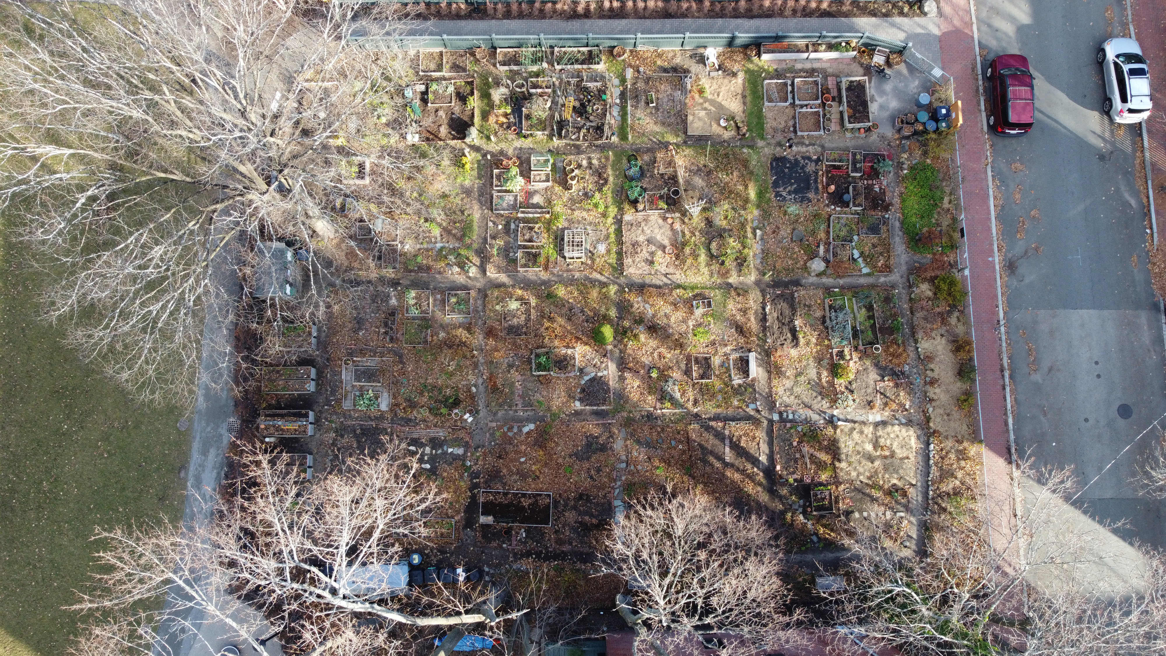 that was enough flying for one day, and i was ready to leave the drone at home, but decided to bring it with me as i went to the community garden to take down some tomato cages. there was one other gardener there, a woman who seemed to be meditating in the sun. she left a few minutes after i arrived and i was there alone. it was too tempting an opportunity so i quickly whipped out my drone and set it into the air. there were a handful of pedestrians going into the park or walking on the sidewalk, none of them seemed to notice the drone overhead. what i wanted was a aerial photo of the community garden, but for some reason i couldn't get the drone in a good place. even though i didn't think i was doing anything wrong, i was still nervous somebody would see the drone and yell at me. initially the fly app gave me a 150ft warning, but that disappeared and i managed to get up to 400ft to shoot a panorama video. i was high enough that i actually saw the ocean. annemarie showed up in the garden while i was bringing back the drone, she didn't seem to notice what i was doing. the DJI mini 2 is inconspicuous enough that most people hardly notice it. it makes a buzzing noise when it's near the ground, but as soon as it's up in the air, most people wouldn't even know what it was to look, and even if they did, the drone is actually hard to pick out from the sky.