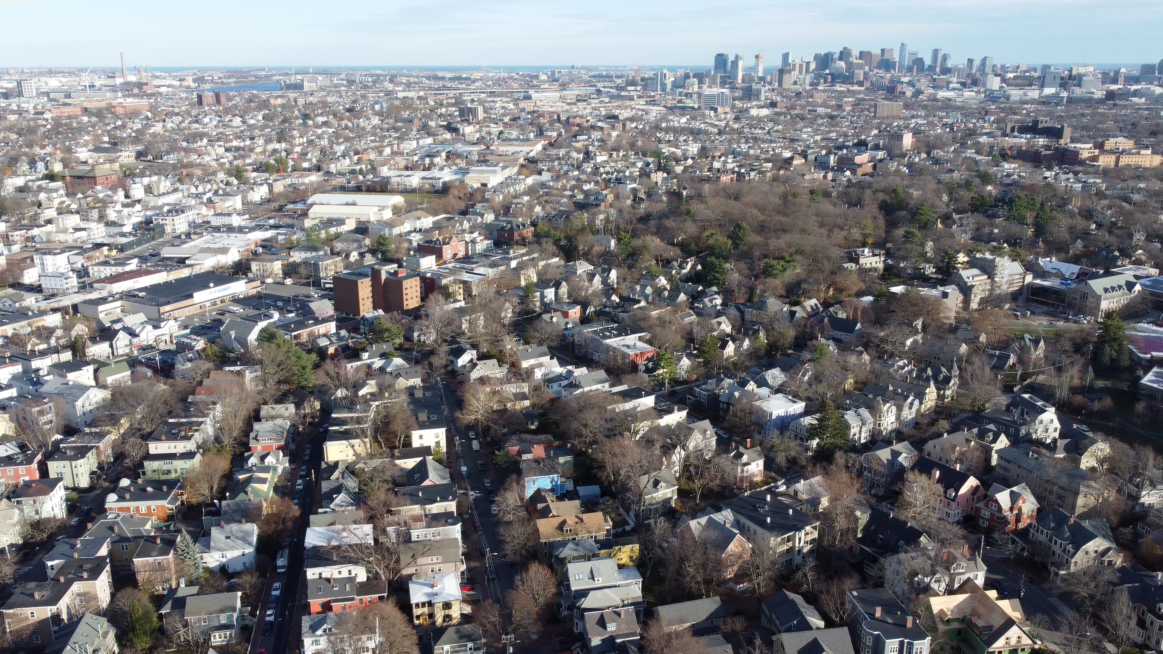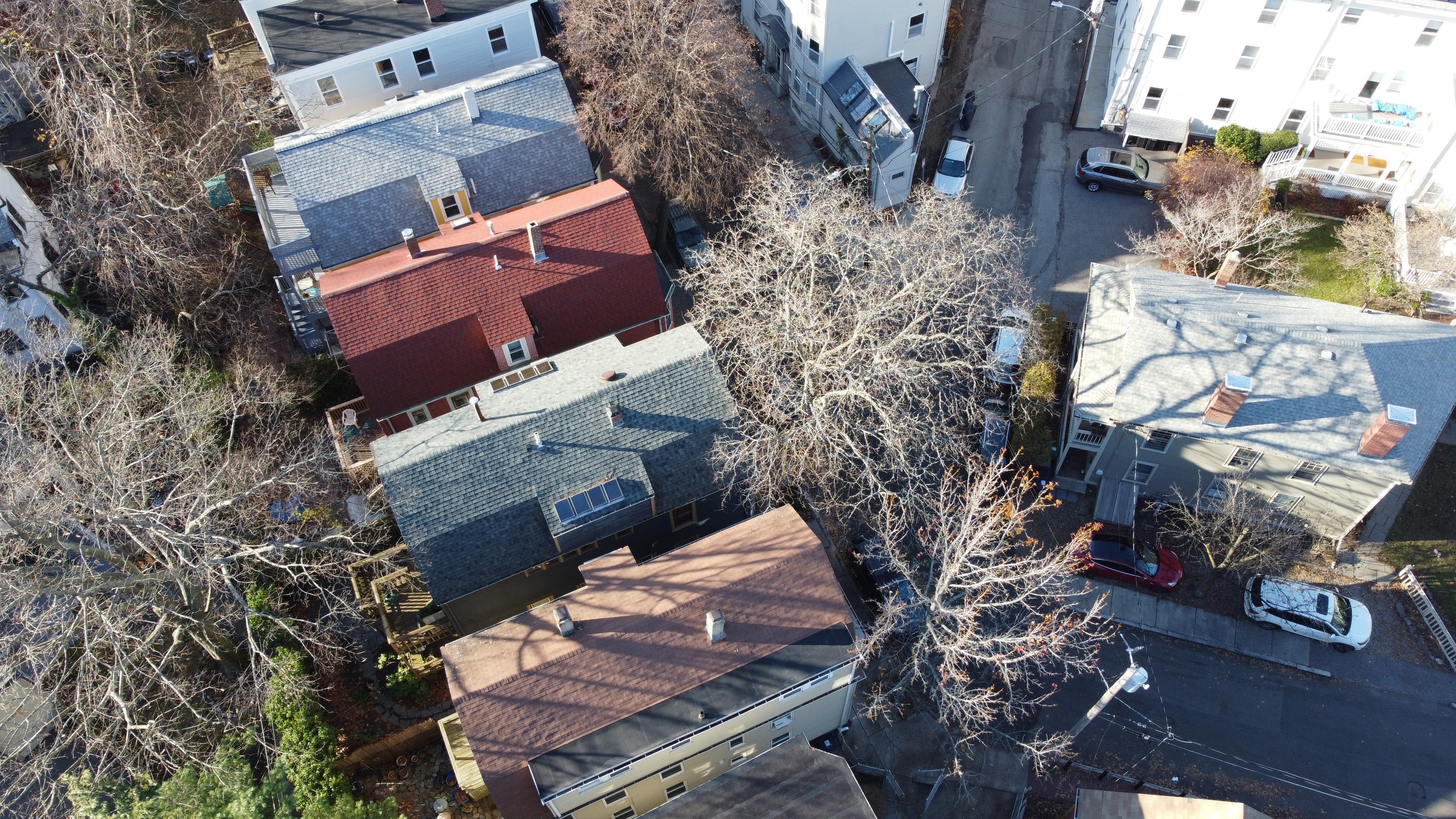 i set out in the afternoon to run some errands. because my upstairs neighbors weren't home (i heard them going out this morning), i decided to a drone launch attempt from my backyard. when you fly drones you start seeing the world a little differently, sizing up locations for proper launches. my backyard would not qualify as a good place. for one thing, the large oak canopy that basically blocks out any clear view of the sky. in front of the house, another large locust tree. if i was thinking about flying around the house, that's pretty much impossible. from the backyard the one window with a clear view of the sky was in my neighbor's yard. so to fly there, i had to first dodge a power line, then avoid hitting tree branches and rooftops, to finally making it out. it was pretty harrowing, a combination of exhilaration and fear. i'm close enough to logan airport that the fly app alerted me to a height restriction of just 150 ft. i was basically just overhead, didn't dare move the drone anywhere that i couldn't see it, panning the camera to take photos and videos. on top of that there were strong winds and the app showed me a wind warning. at one point my phone completely froze. after about 2 minutes it started working again, and i was able to regain contact. luckily the drone just stayed in place in the air; i was afraid it would try an automatic return-to-home, smashing into every obstacle as it came crashing down to earth.