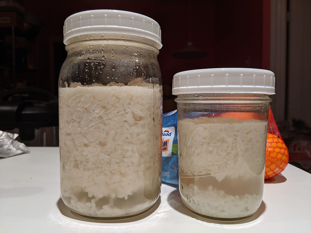 now that i've successfully made jiu niang, i wonder if i can make a larger batch? my dream is to use up the entire 5 lbs. bag in one sitting, that's probably about 10 cups of glutinous rice. can the instant pot cook up 10 cups of rice? i don't even really need the instant pot to make jiu niang. i used it to cook the rice initially, but ever asian family has a rice cooker, which can cook the glutinous rice just as well. i used the instant pot again during the fermentation stage, but that's just to keep an ideal warm temperature for the bacteria to thrive; glutinous rice will just as readily ferment in room temperature, albeit slower. my father says it takes about 3 days for his jiu niang to fermented properly at room temperature. the instant pot just speeds up the process.