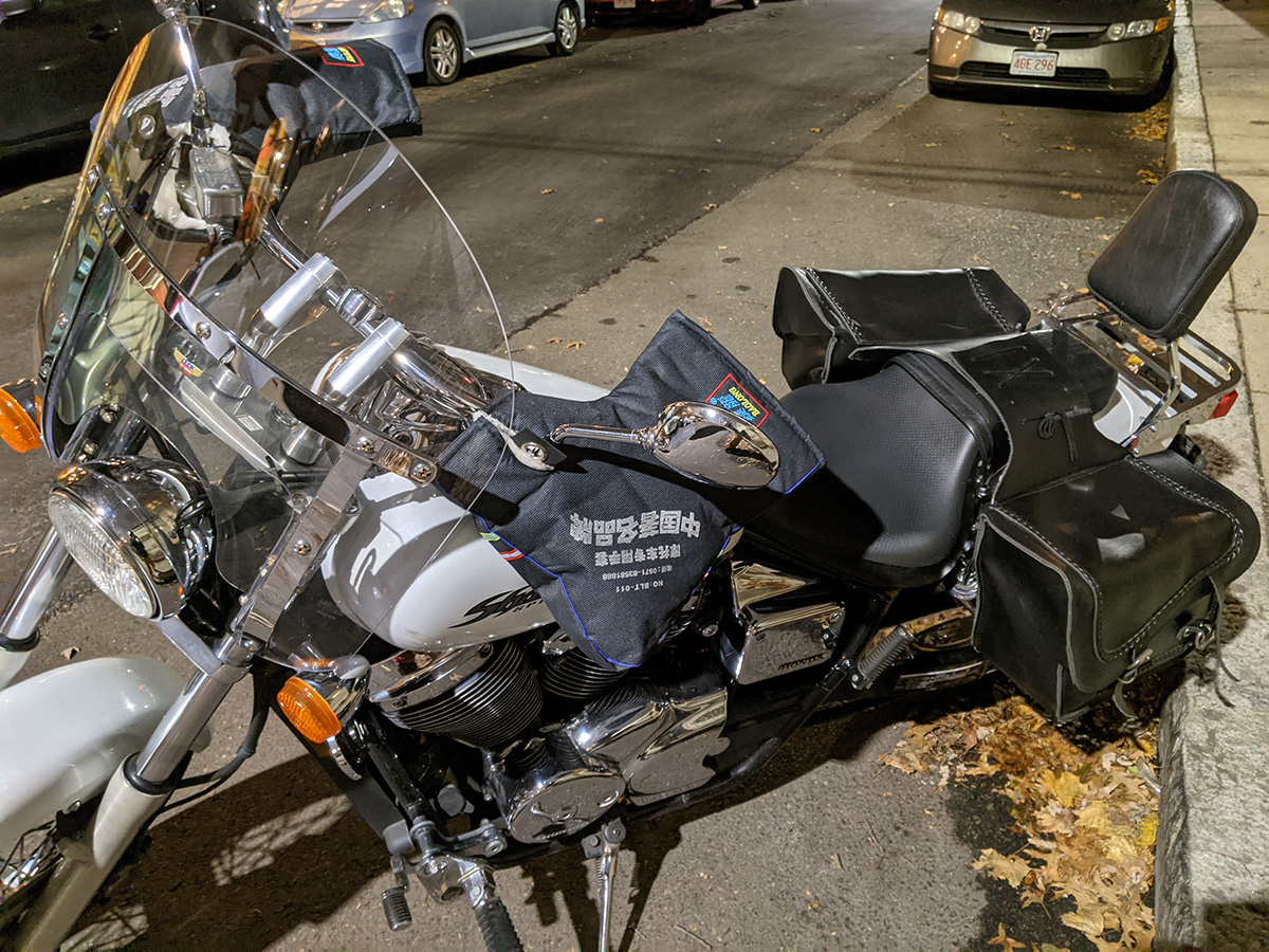 despite the cold temperature, it was a sunny day, and riding the motorcycle with my handlebar mitts wasn't too bad. my hands were still a bit cold though, not because of the wind, but because of the freezing metal handlebar grips.