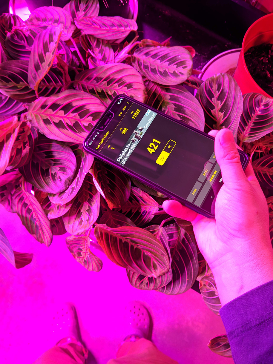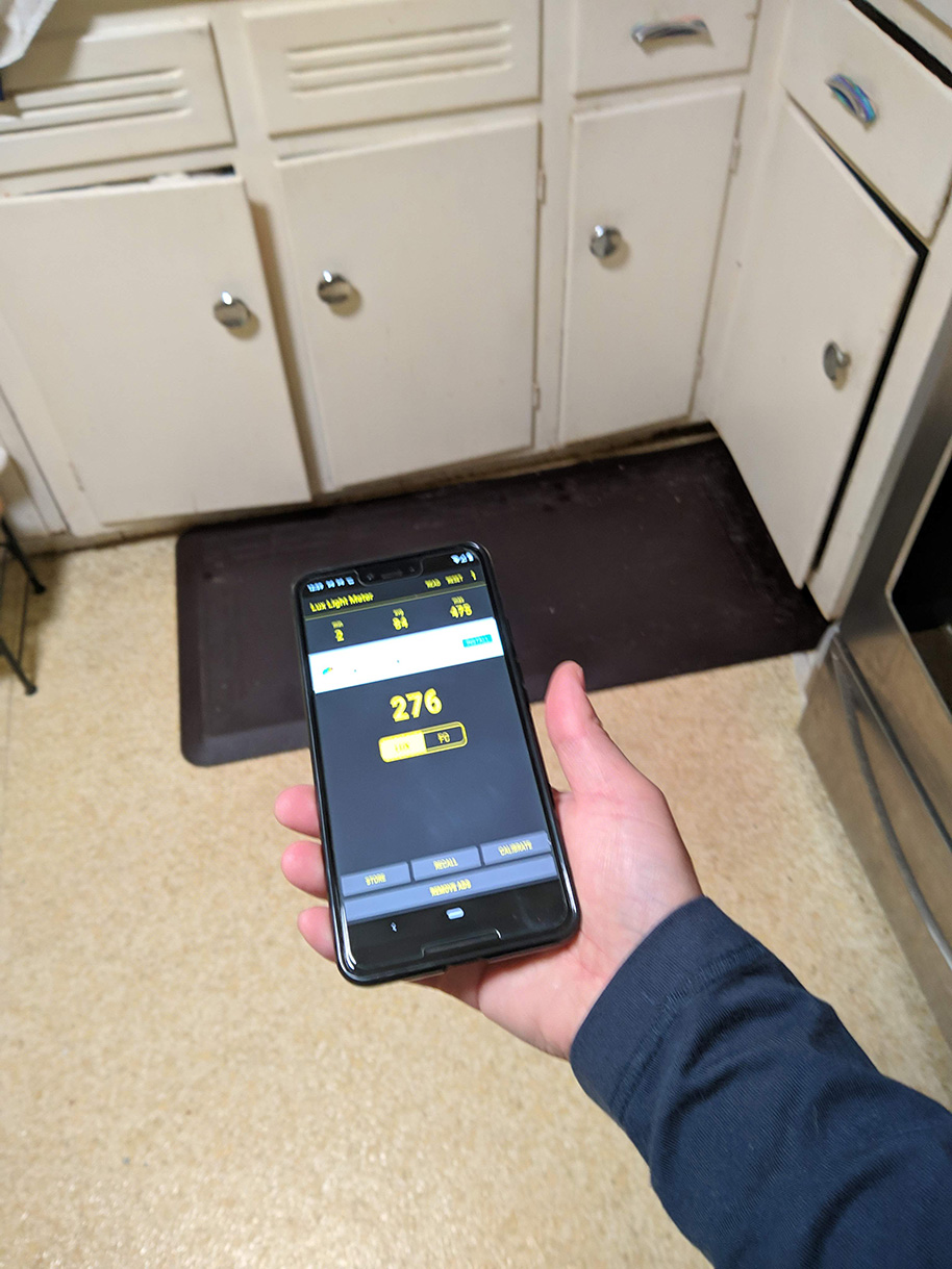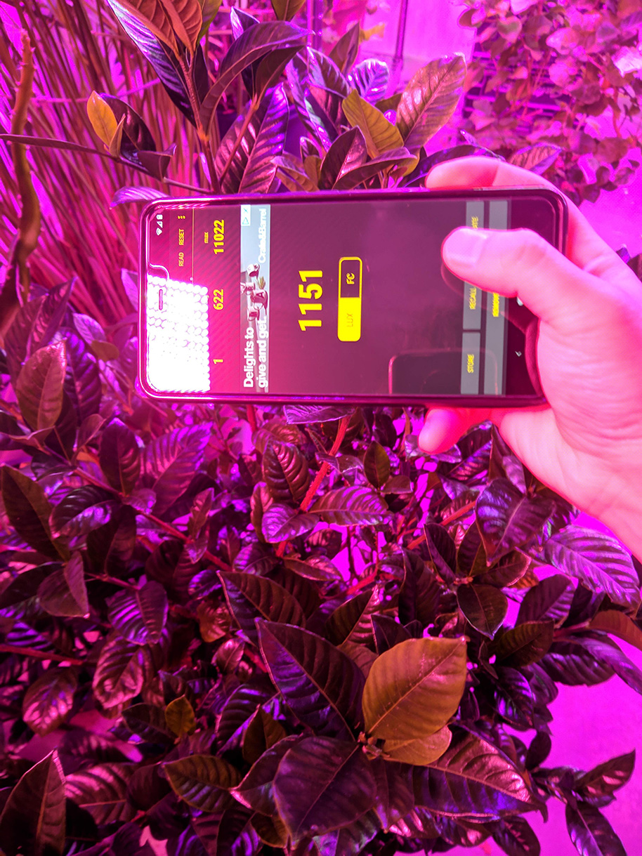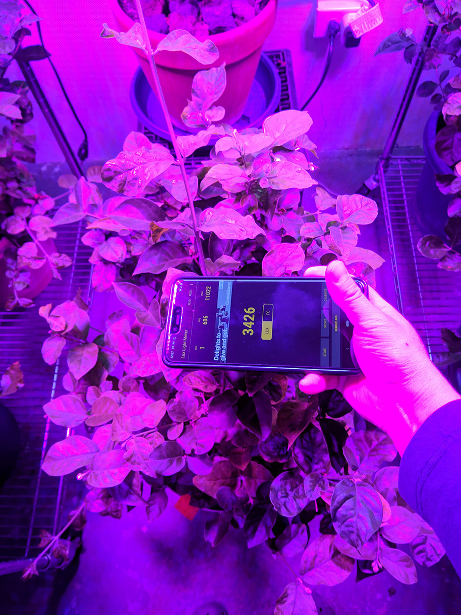 i remember i installed a light meter app on my phone and took some measurements. the values are given in lux, not sure how they relate to lumens (one lux is one lumen per square meter), nor how accurate the values are, but at least i can gauge the light intensity from different areas in the grow room. i went to borrow my father's phone because i wanted to take some photos. went i installed the app on his phone (moto G7 pro), it didn't seem to work so i ended up using my pixel phone to do the reading and the moto phone to take photos instead (later i found out there was oil over the motor G7 light sensor, that's why it wasn't reading properly). directly under a led light source i can get lux readings upwards of 11K. lux below 2500 is considered low light, upwards of 10K medium, and higher than 10K high.