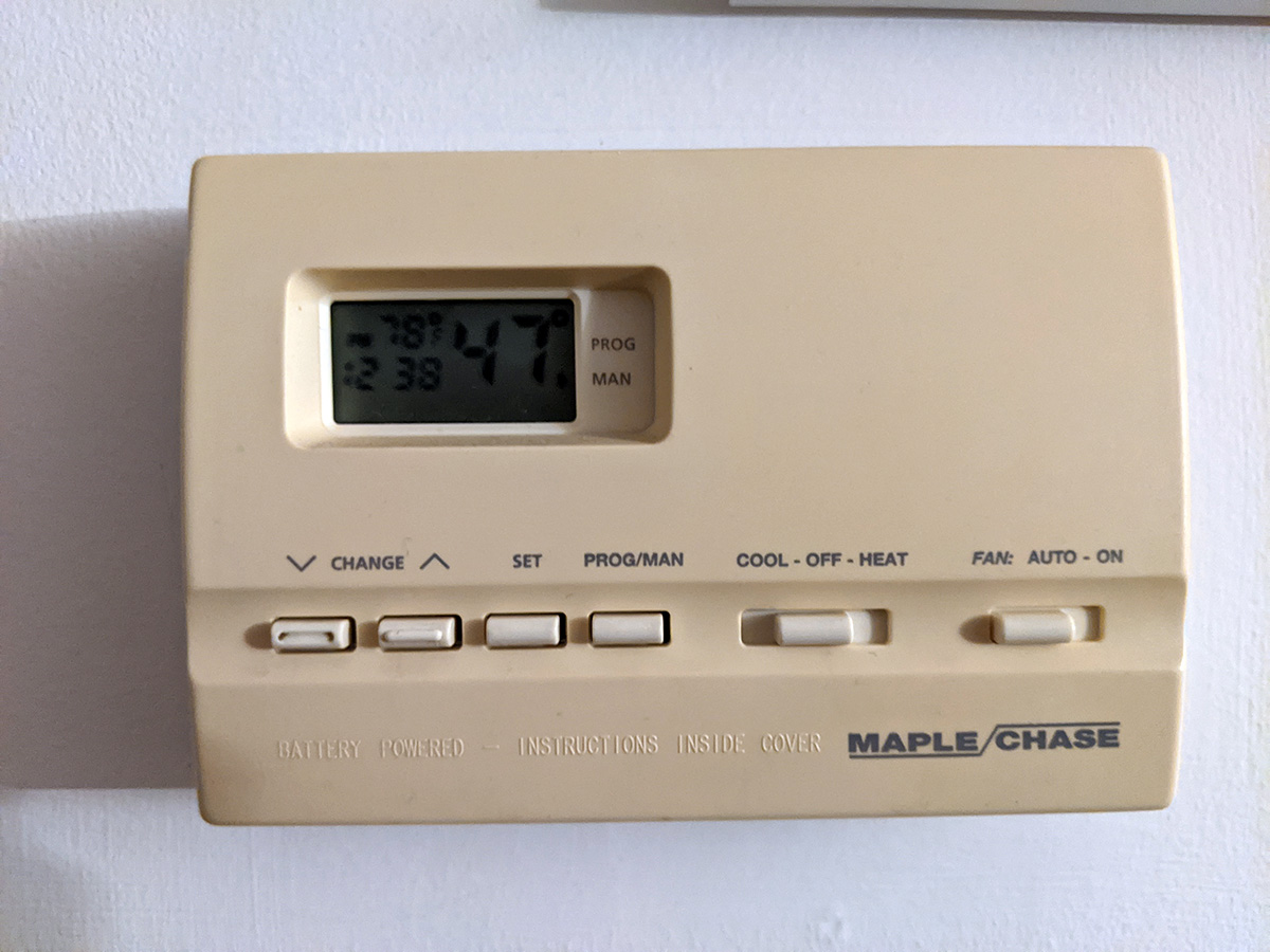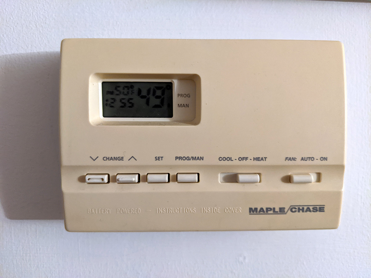 we've never been to binbin's house in the evening, it was a nice change because we could also check that the timer lights were all working. i turned on their thermostat and we waited in the basement for their furnace to kick in. i went through the rest of the house checking that the heating vents were working. for some reason all the vents on the second and third floor were closed, i think it's because heat from the first floor will naturally rise to the other floors. their forced air heating is pretty efficient, in the time we were there the temperature went up from 47°F to 49°F. i set the thermostat to 50°F, no reason to keep the house too warm if it's empty. we also adjusted the water heater temperature to vacation mode (something we should've done a year ago), or better yet, simply turn off the hot water heater (maybe do it next time).