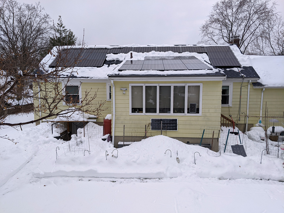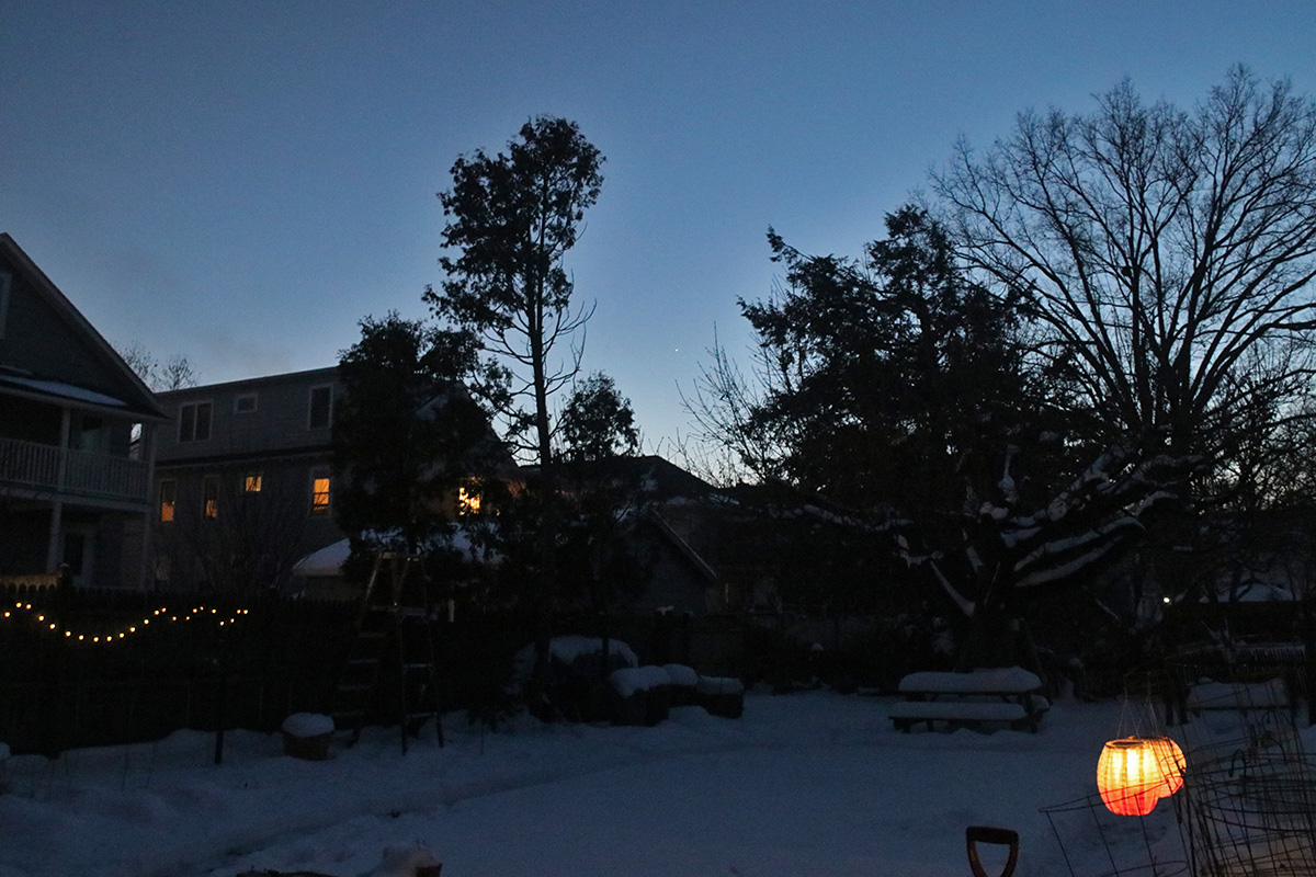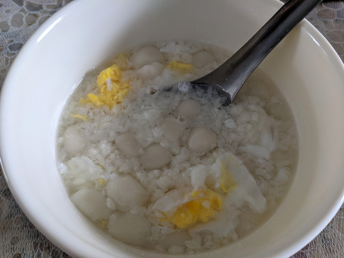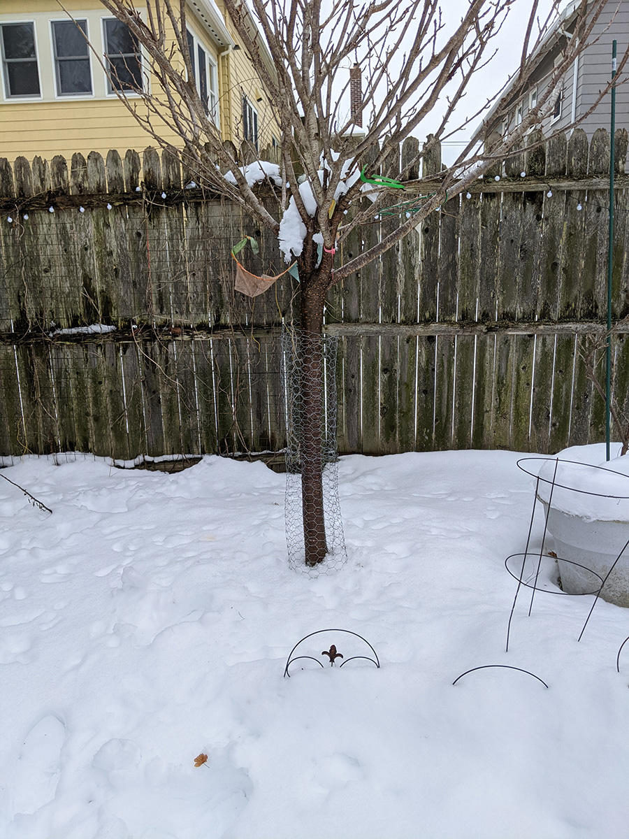 my father made some jiu niang soup for lunch with some hand-rolled glutinous rice balls. i was in the backyard checking the solar panels to make sure they were clear after the bit of snow that fell last night (my father told me the snow had melted but i checked just to be sure). i saw he already put a coil of chicken wires around our flowering cherry; i did the same with our flowering plum; it's to prevent rabbits from chewing up the bark when they can't find anything else to eat.