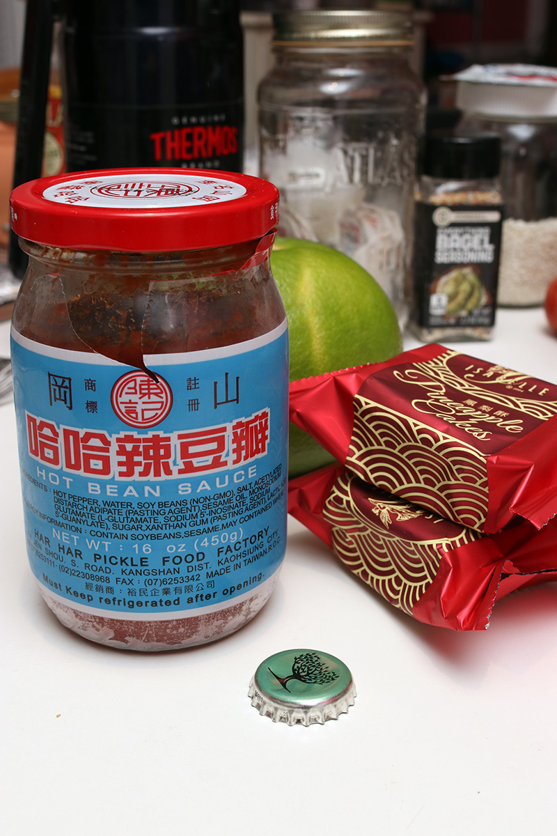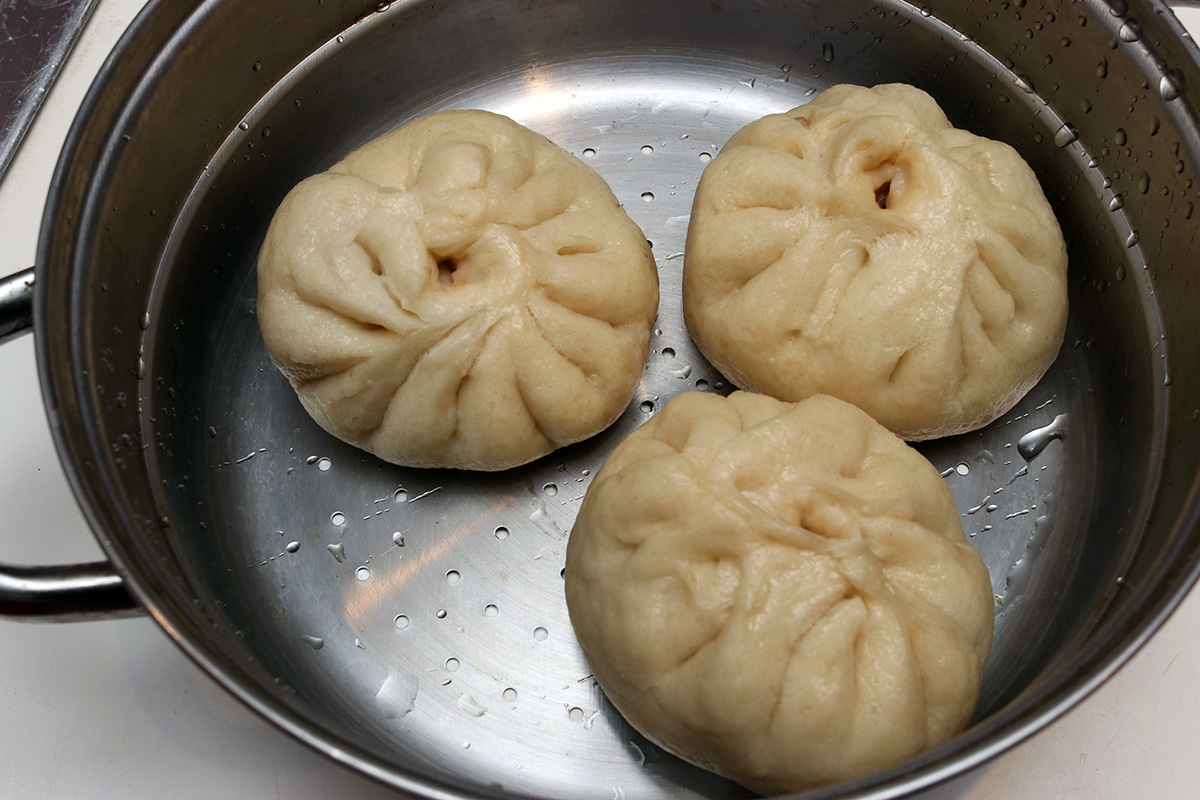 i didn't heat up my meat buns until 9pm. i used the stainless steel cooktop steamer because it gives a more authentic steam heating compared to the microwave. i scooped out 3 teaspoon of hot bean sauce, way more than i needed.