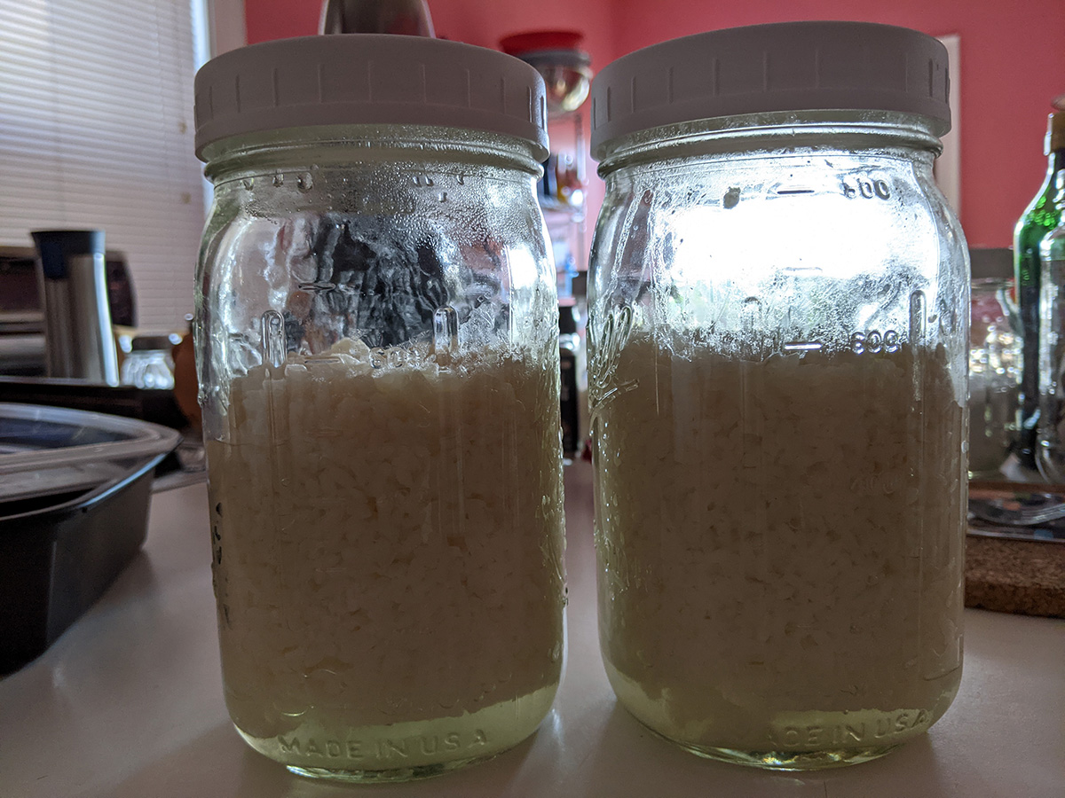 maybe to make up for waking up so late yesterday, i woke up early for a change, by 9:30am. it's day 3 of my batch v6 2020-12-23 jiu niang ferment, i took the jars from the warm confines of the bathroom to give it a taste test. there wasn't a lot of liquids but enough to float the rice. a spoonful tasted delectably sweet, a success. i couldn't really tell the difference between the angel rice leaven versus the traditional yeast ball, they both tasted similarly sweet. i also bear in mind i was using expired rice leaven; had i used fresh leaven, i might've achieved optimal sweetness that much faster.