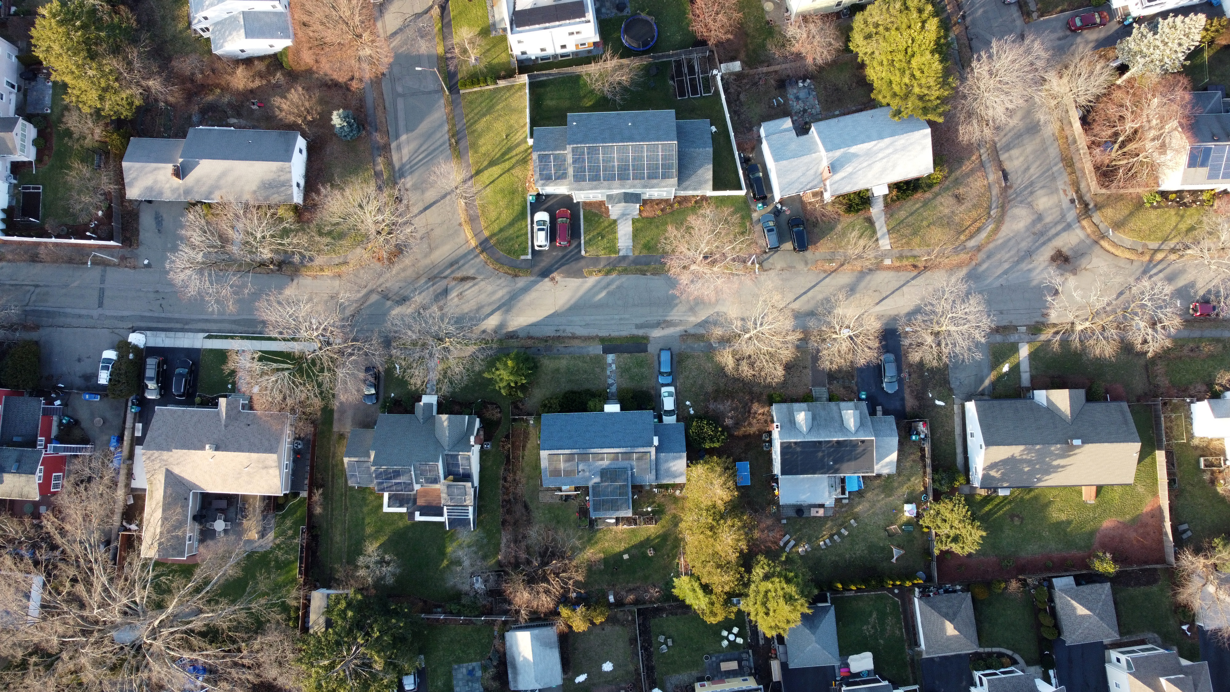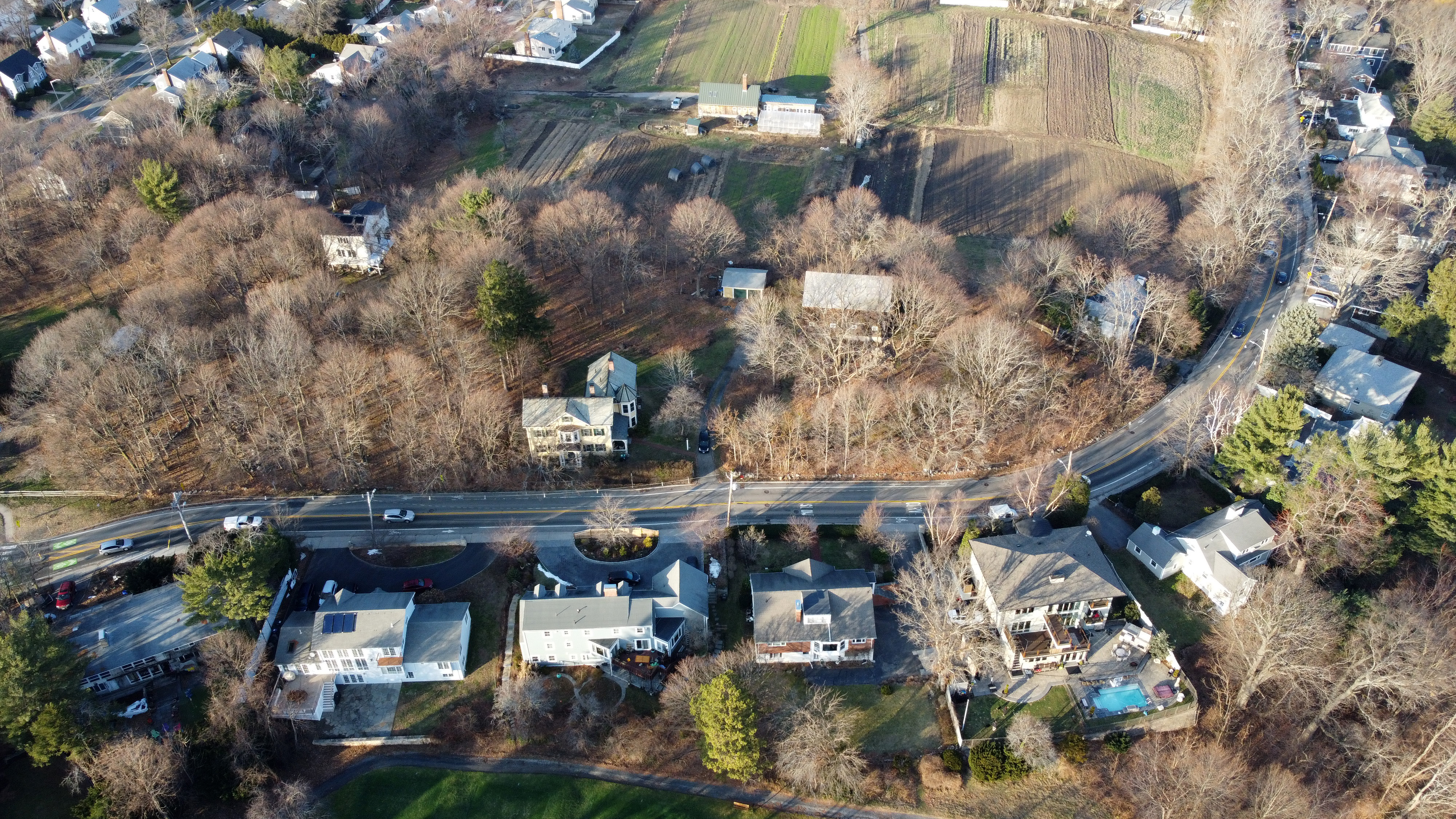 although it was cloudy at times today, it was dry with a slight wind, and i couldn't resist going out into the backyard to do another flight on the drone. i basically did the same loop as yesterday, towards fresh pond golf course, to belmont acres farm, to burbank school, then back. i didn't lose connection this time (maybe because i updated RC-N1 controller firmware before flying) so i had a complete flight data recording, which said i went out and flew 2.28km this time (1.4 miles). around fresh pond i stopped to check out a pool house i spotted yesterday. not only did this house have a pool, but it seemed to be still in use, which means it has to be heated. i also tried to get a better photo of burbank school, i flew closer this time, but i think i was still too high up.