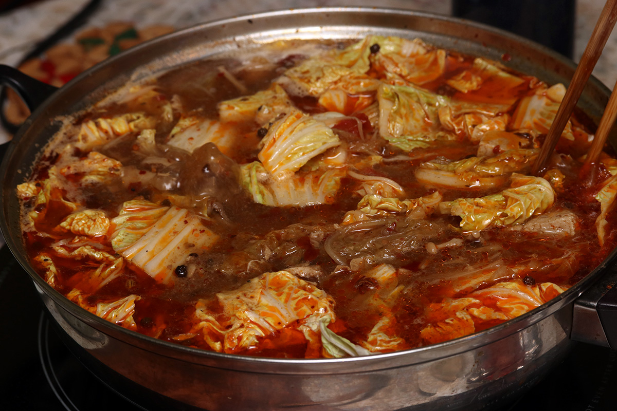 my parents and i had hot pot again for the 3rd straight day. the strategy is to run the air purifier at the same time so it doesn't stink up house. there wasn't much left in the hot pot, we had one last package of sliced lamb.