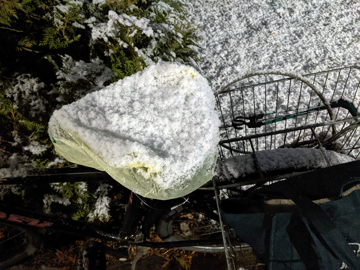 after dinner i rode back to cambridge. my father offered me a ride but conditions weren't too bad, at least the roads were clear. only when i got home did i realize i forgot to take the leftover scallion bread and pineapple cakes my mother had prepared for me.