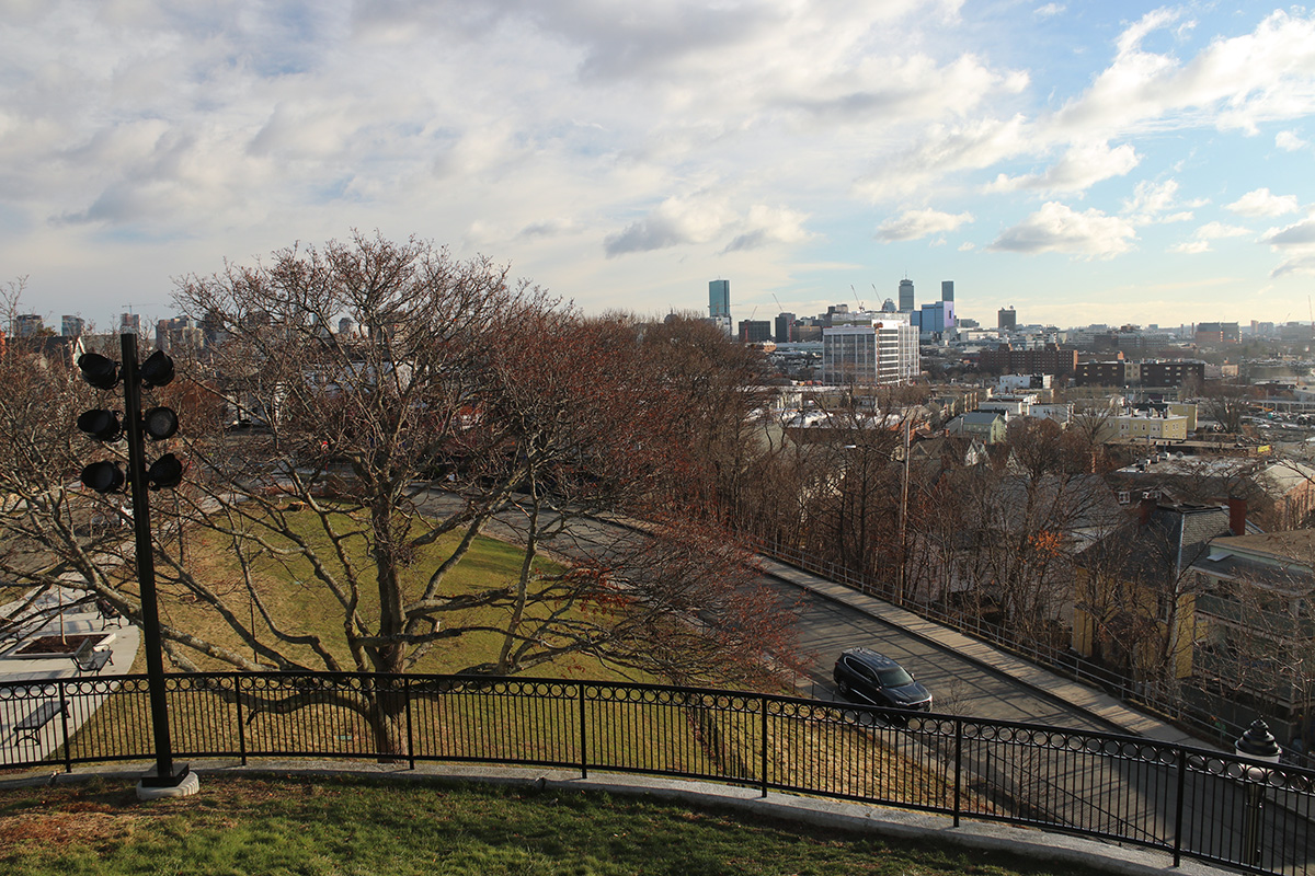 prospect hill is a weird place to fly because it lies on the border of the path of one of logan airport's runways so there's a height restriction. and in fact it did tell me i was restricted to 60m (200ft), but once i flew the drone a little bit away from prospect hill, the restrict was lifted and i could fly up to 400ft again. i only realized this when i issued a return-to-home command and the drone actually ascended to 400ft before returning home. but since i launched from a hill, i was definitely flying above 400ft from ground level.