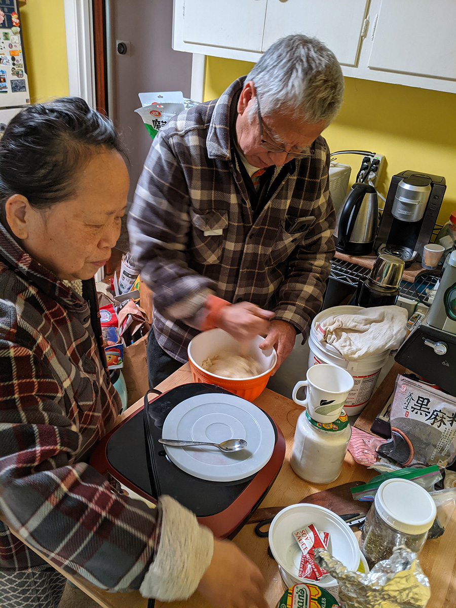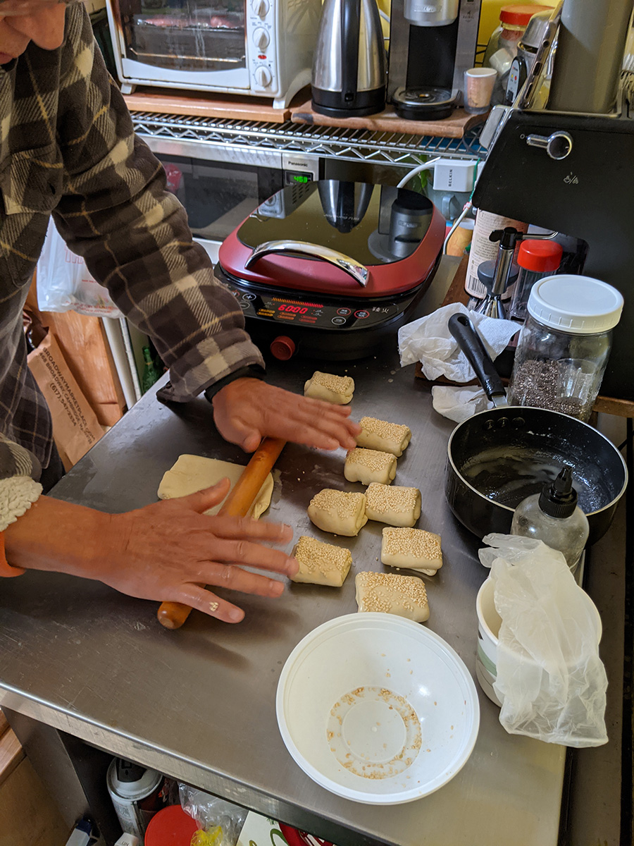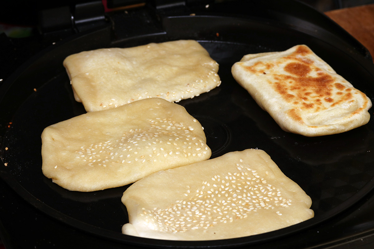 for dinner my parents made shaobing (燒餅) with their electric frying pan. my father said they came out successfully, with extra crispy skin, but i prefer the shaobing they used to make, that was more bready.