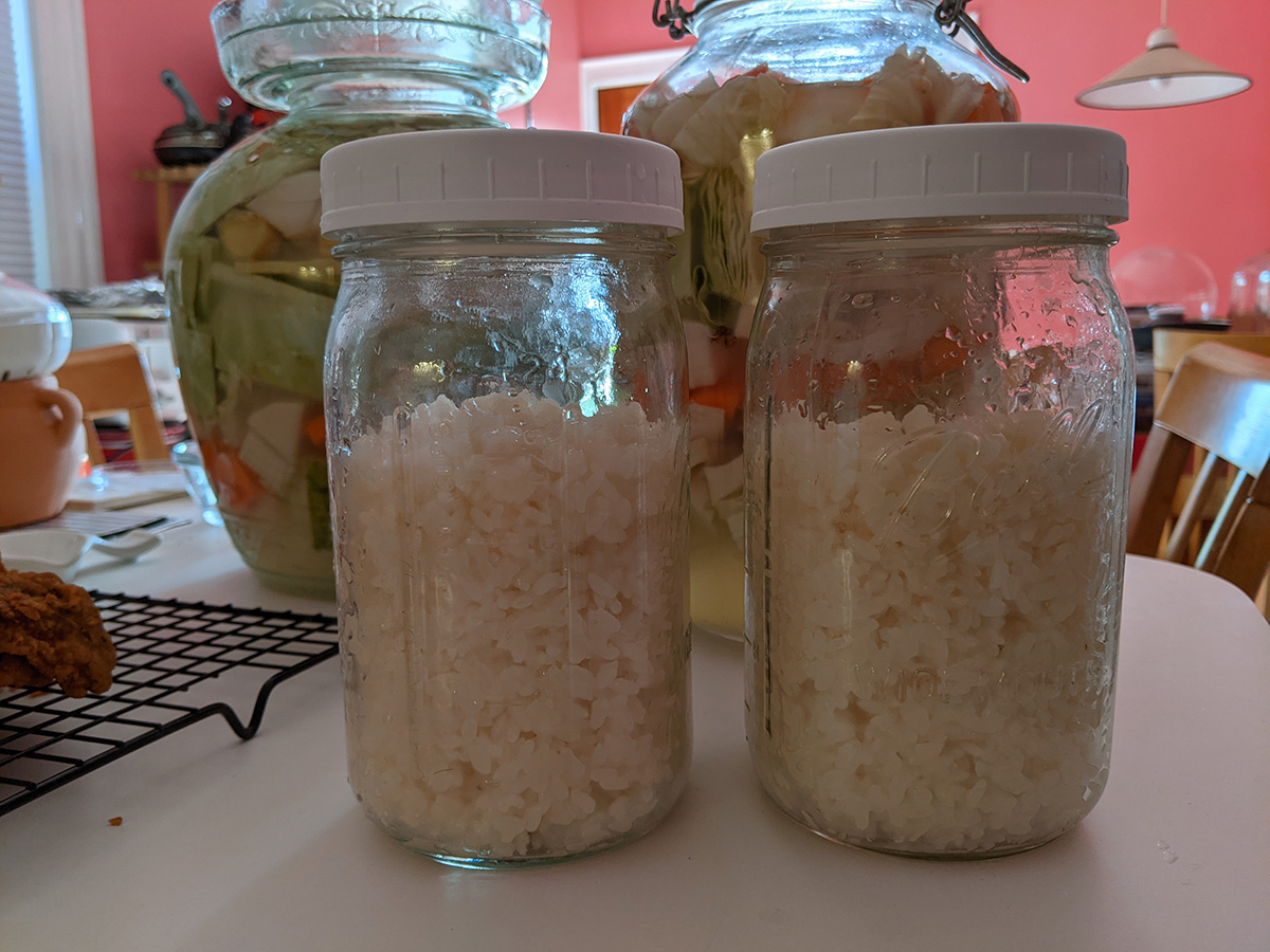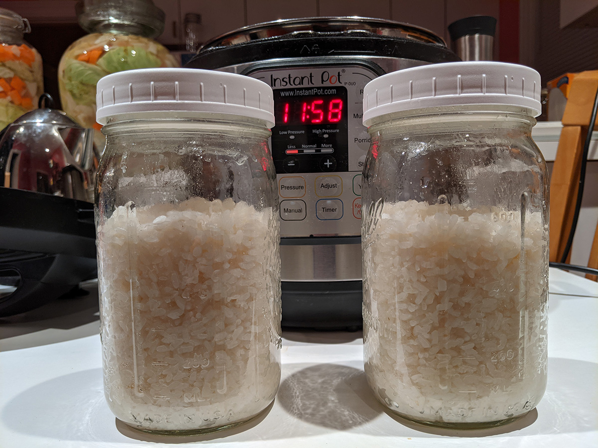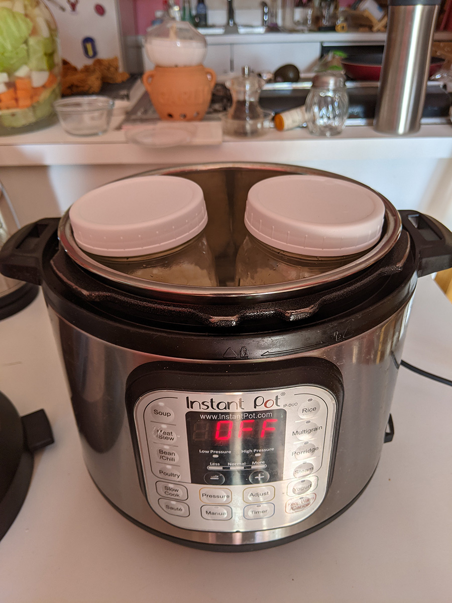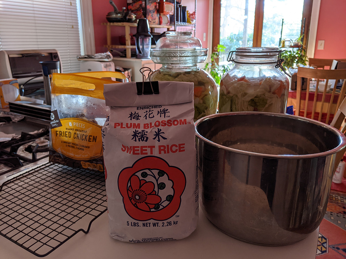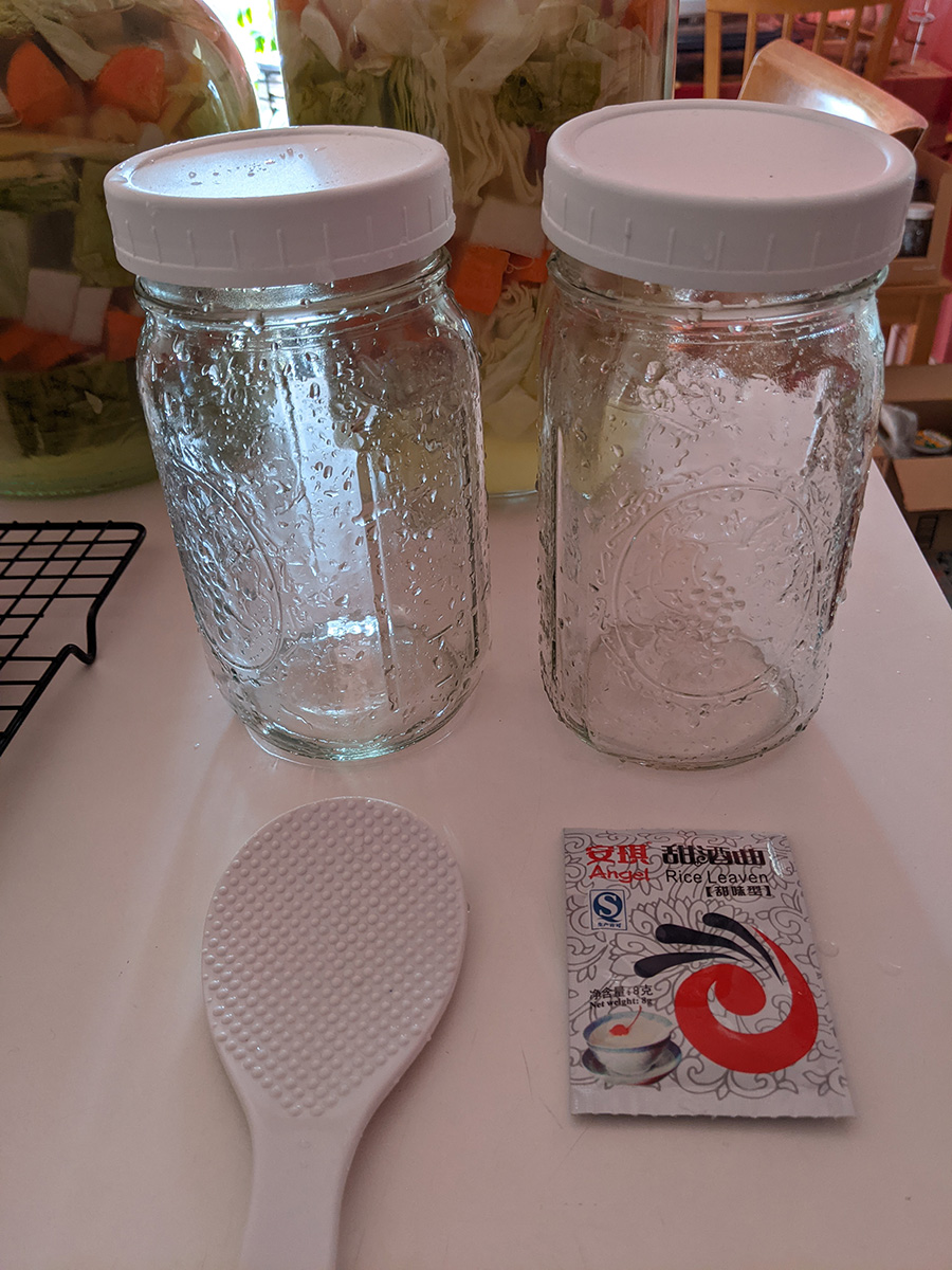 afterwards i made another batch of jiu niang. i've lost track which batch this is, i'm going by date now and what special steps i'm taking. this particular version i'm using a pack of expired angel leaven (2017) but instead of slow fermenting for 3 days, i'm quick fermenting in the instant pot for 24 hours. this will let me know once in for all if the fermented glutinous rice will turn sour because i'm using a yeast ball or leaven powder. after this i will have tried every iteration of jiu niang making.