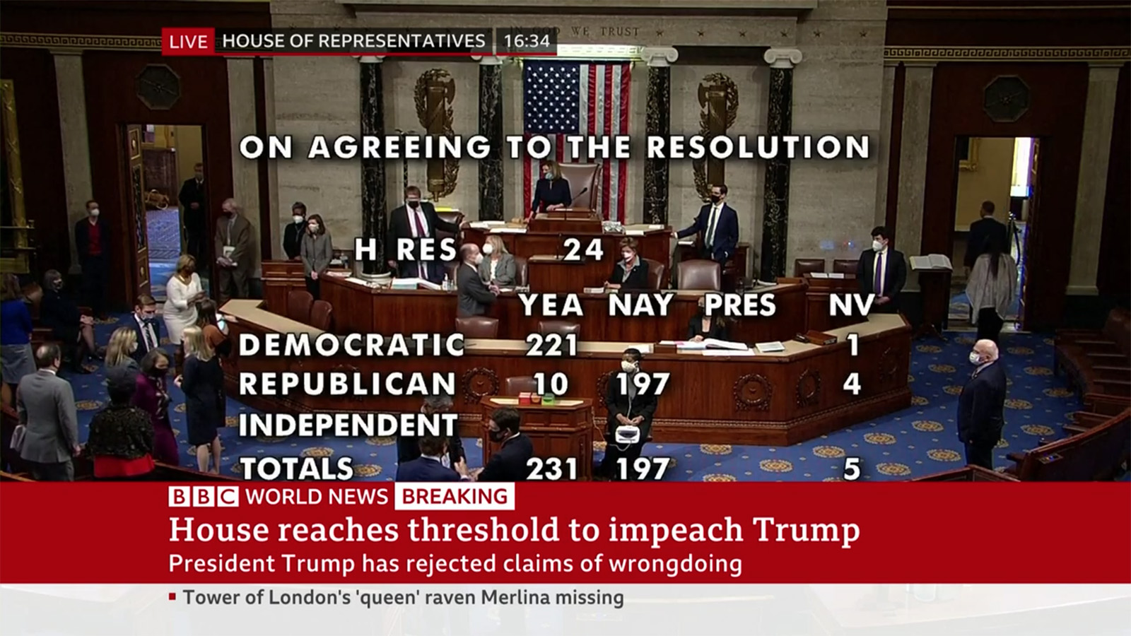 what happens now is a bit more murky. senate republican majority leader mitch mcconnell has already said he wouldn't reconvene the senate to take up the impeachment trial before trump leaves office. after that democrat chuck schumer becomes new senate majority leader, and he gets to decide when and if an impeachment trial will happen. it's a little no-win for the democrats, because if they do have the trial, it takes away attention from biden's new administration. but if they don't have one, then it means trump escapes punishment for causing insurrection against the US government. democrats might push the trial until after the first 100 days, but by that point the momentum might be lost, as people start to forget about trump. or maybe trump will continue to be a pest while out of office, in which case an impeachment trial is very much a reality.