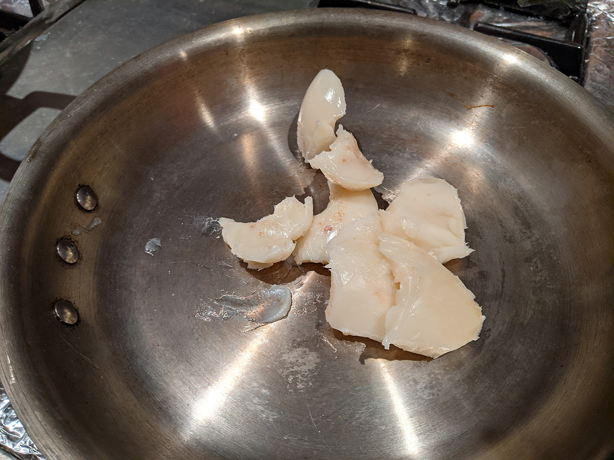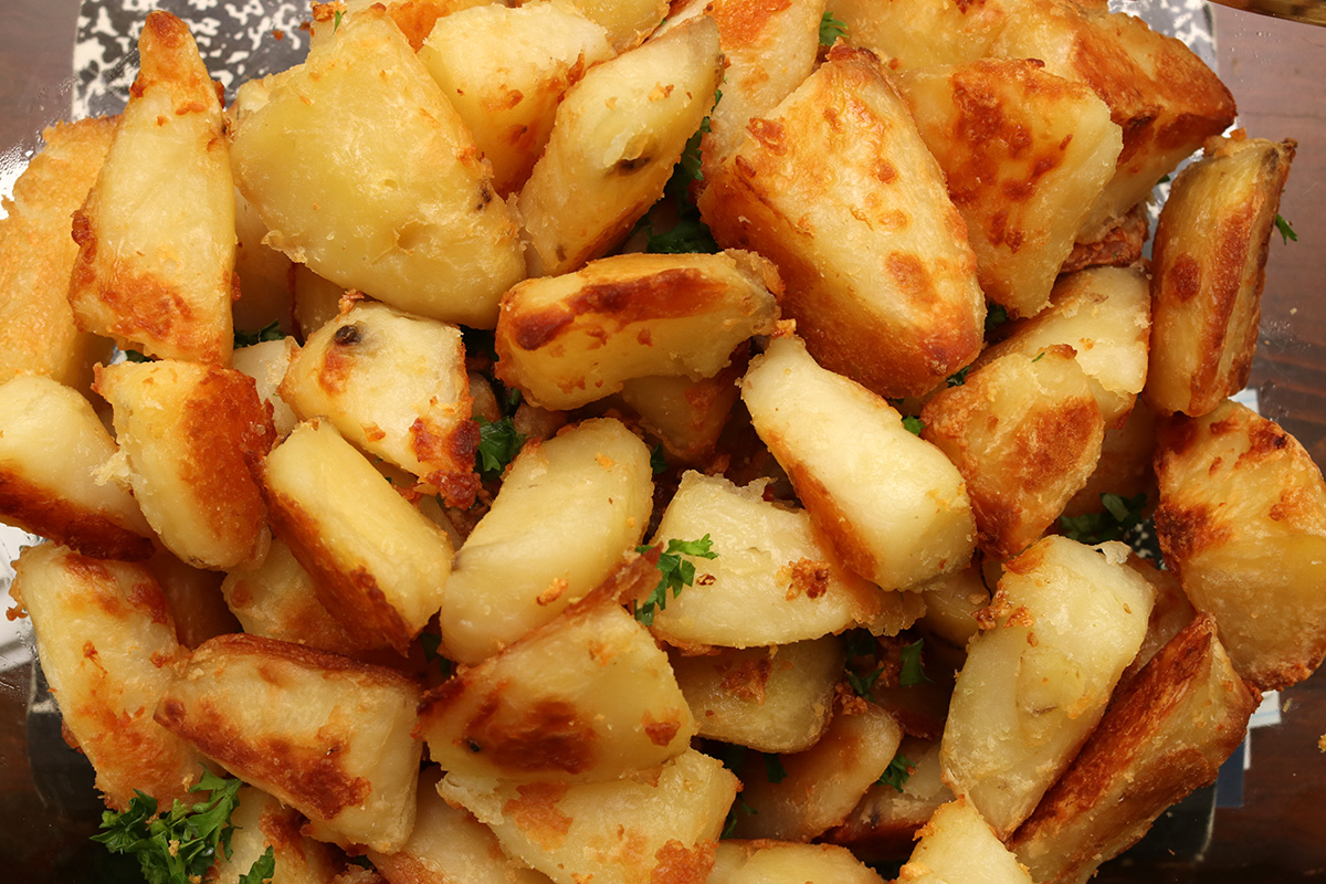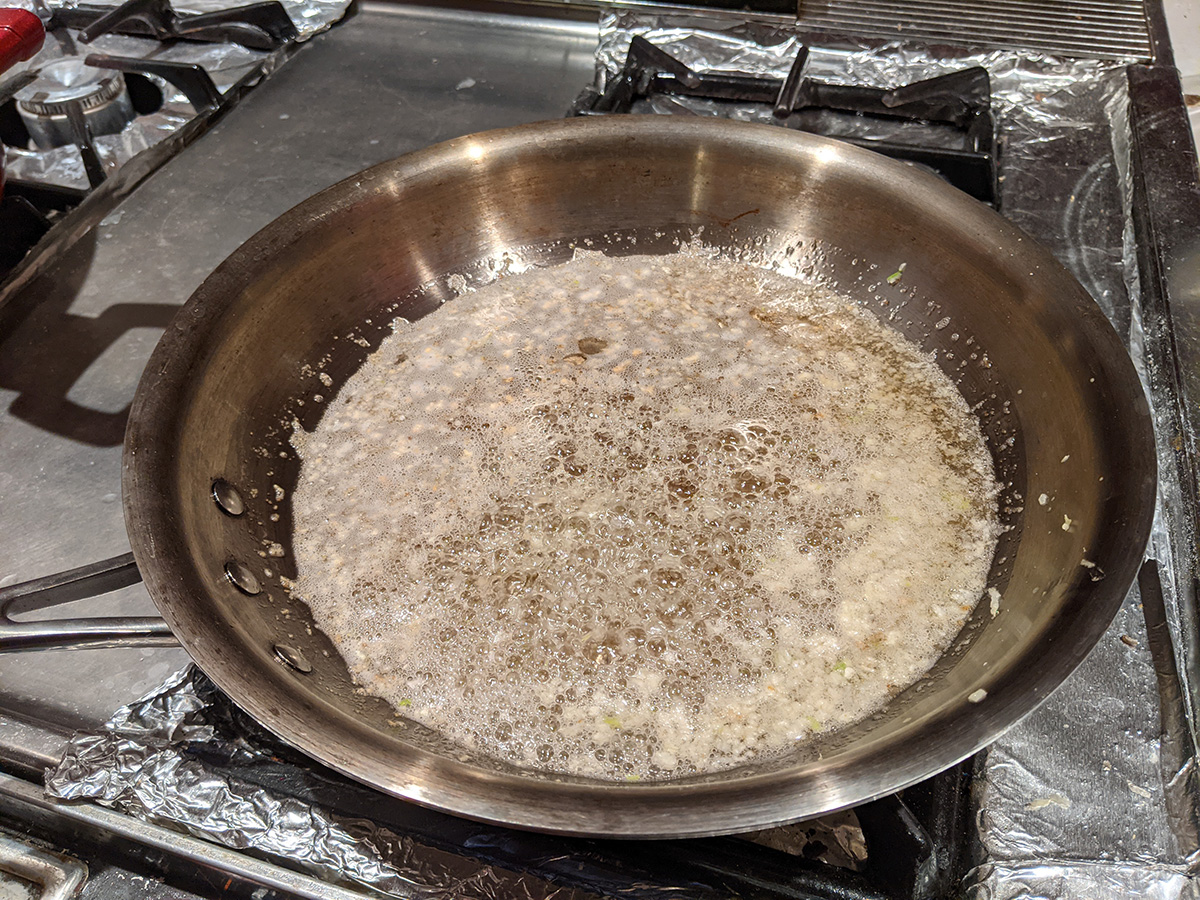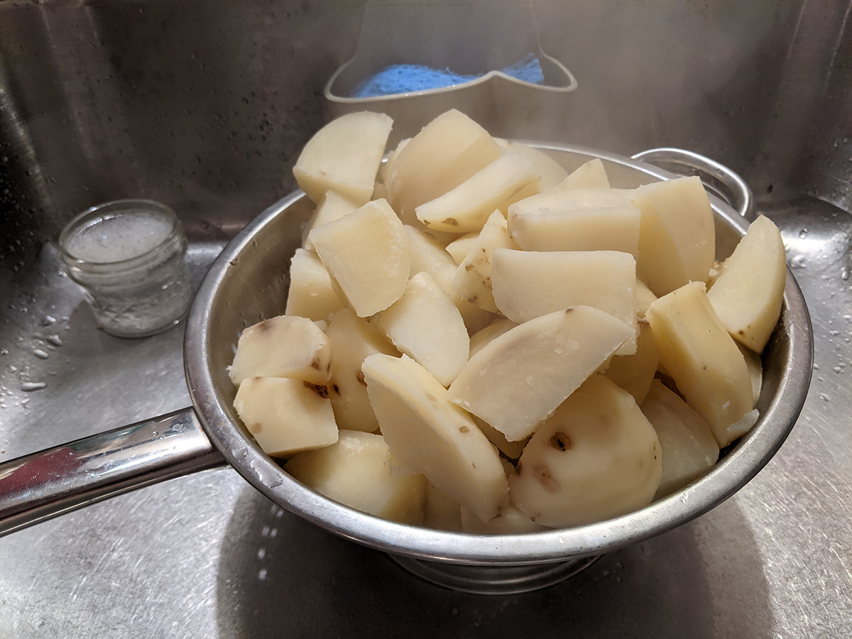 in the evening i made kenji lopez-alt's crispy roast potatoes. the recipe called for 4 pounds of potatoes, i used up the entire 5 pounds of russet. i tossed the cooked potatoes in 5 tbsp of garlic-infused bacon fat then baked them in the oven for an hour, turning them a couple of times so they could brown evenly. the final result was okay, but i wasn't going to finish 5 lbs. of starch in a single night. having the oven on did warm up the house a bit, and the garlic-infused bacon grease left a savory smell in the house (if you like that sort of smell).