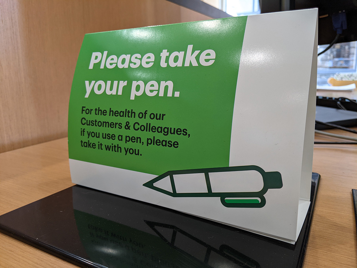 i signed up for the td beyond checking account, which had no fees as long as i kept $2500 in my account. everything's done electronically these days, so nicholas sent me a text with a link that i clicked on to see several different edocuments i had to sign online. once that was done, he gave me a few complimentary checks and a debit card. this was a much nicer card than the one i got before, this one was actually plastic with a microchip with embossed numbers and letters. i was able to use my username from before, but nicholas created a temporary password since i forgot my old one. he took my check from citizens bank (a pretty sizable amount) and deposited it into my new account. with that i was finally done. td bank is also famous for their swags, but they didn't have anything at the moment, the only other thing i left with was a pen.