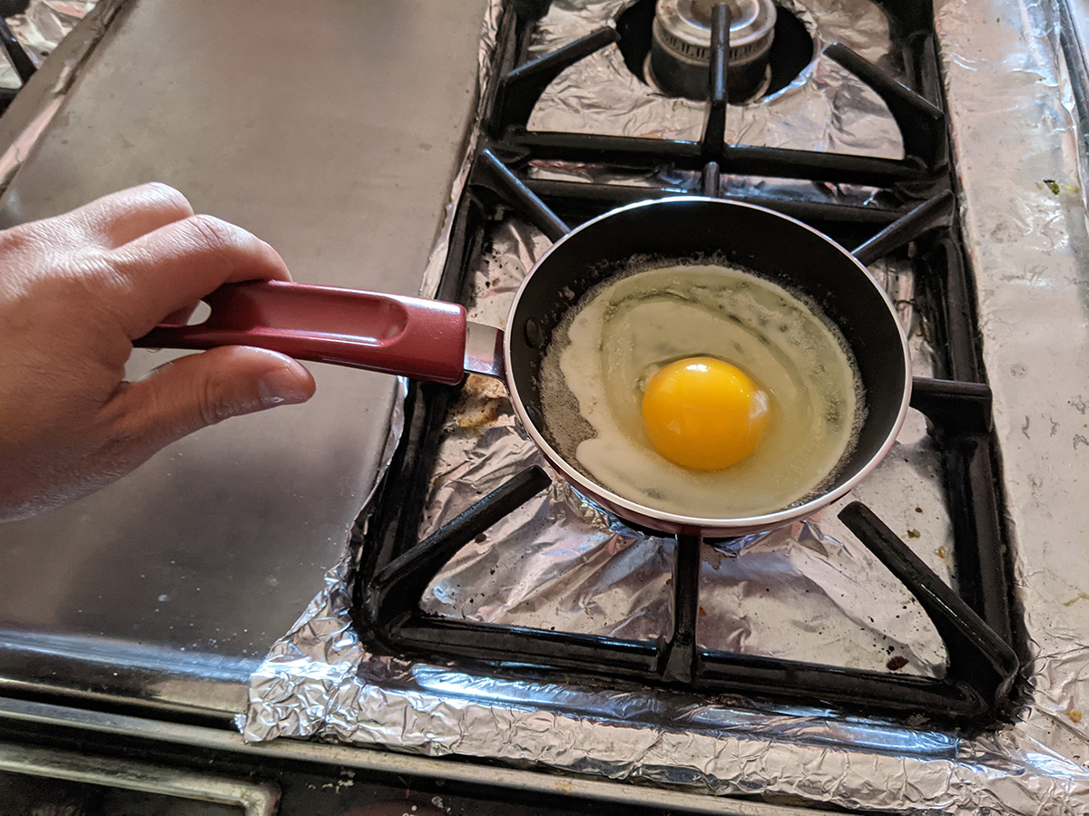for lunch i made an english muffin sandwich stuffed with garlic guacamole, smoked virgnia ham, american cheese, and egg. i cooked the egg in the t-fal one egg wonder frying pan.