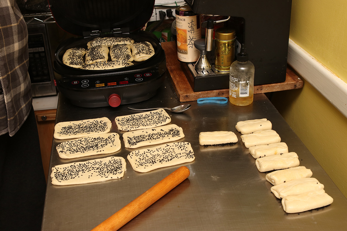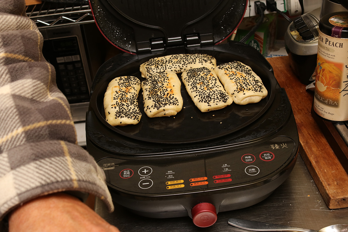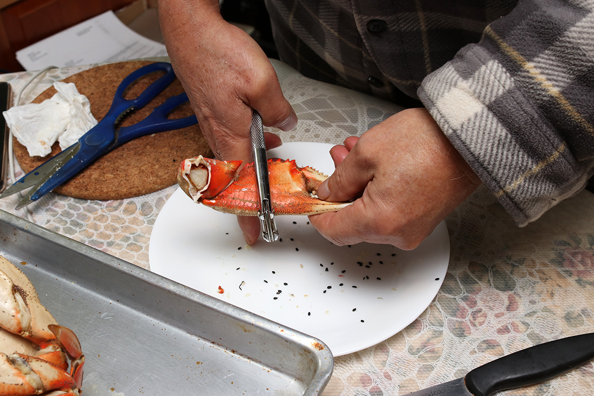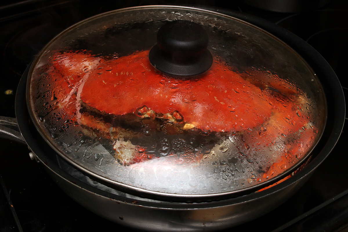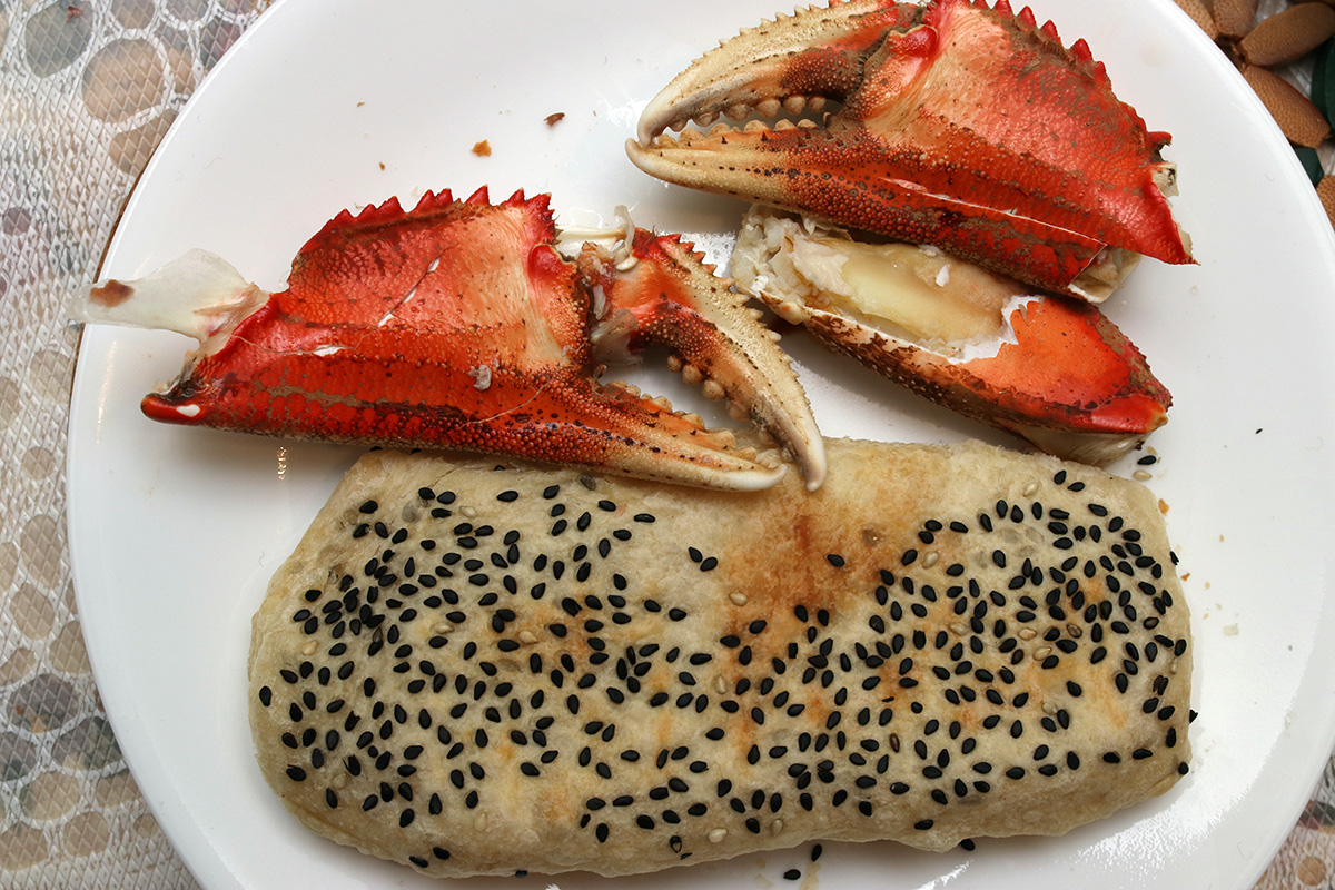 for dinner, my father made shaobing in the electric baking pan. my aunt had given my parents a large dungeness crab which they cooked by steaming in a large frying pan.