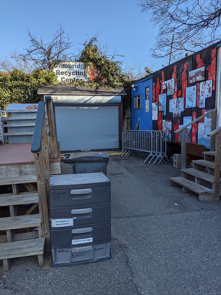 i woke up early this morning on the coldest day so far this winter to ride down to the cambridge recycling center to drop off some used lithium ion batteries (one from my macbook pro, one from my aunt's nexus tablet). the recycling center used to be open nearly every day, but due to the pandemic it's now only opened tuesday evenings and saturday mornings. when i called them yesterday - hoping i could simply drop off the batteries - they told me i could only come during the designated times.