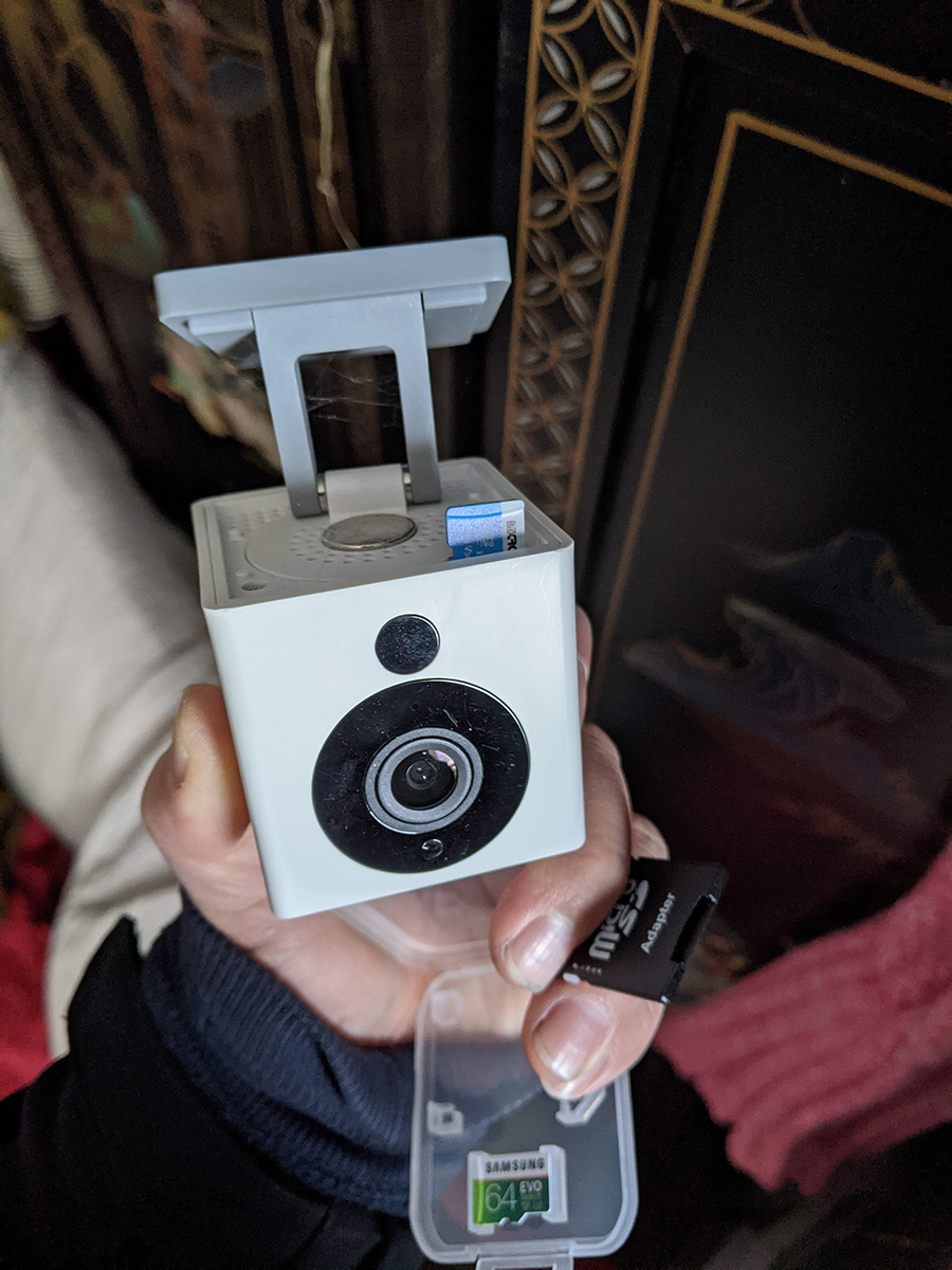 we also checked the pipe heating cable. just to review, the pipe for the upstairs bathroom runs along the outer wall of the house. this is poor design because when the temperature gets too cold, the pipes (inside the walls) are liable to freeze and burst open. in order to prevent this, my father has installed a heating cable around the pipe. it hasn't been turned on all winter and my father couldn't even be sure if it's working, since the contractors who worked on the house closed up the ceiling, leaving just a hole with the cable end sticking out. but we ran an extension cable to the heating cable, using a remote smart plug to see if it was drawing power. the power draw was zero, but this wasn't unusual because we measured the inside temperature of the hole and it was still 58°F; the heating cable won't turn on until the temperature drops below 38°F.
