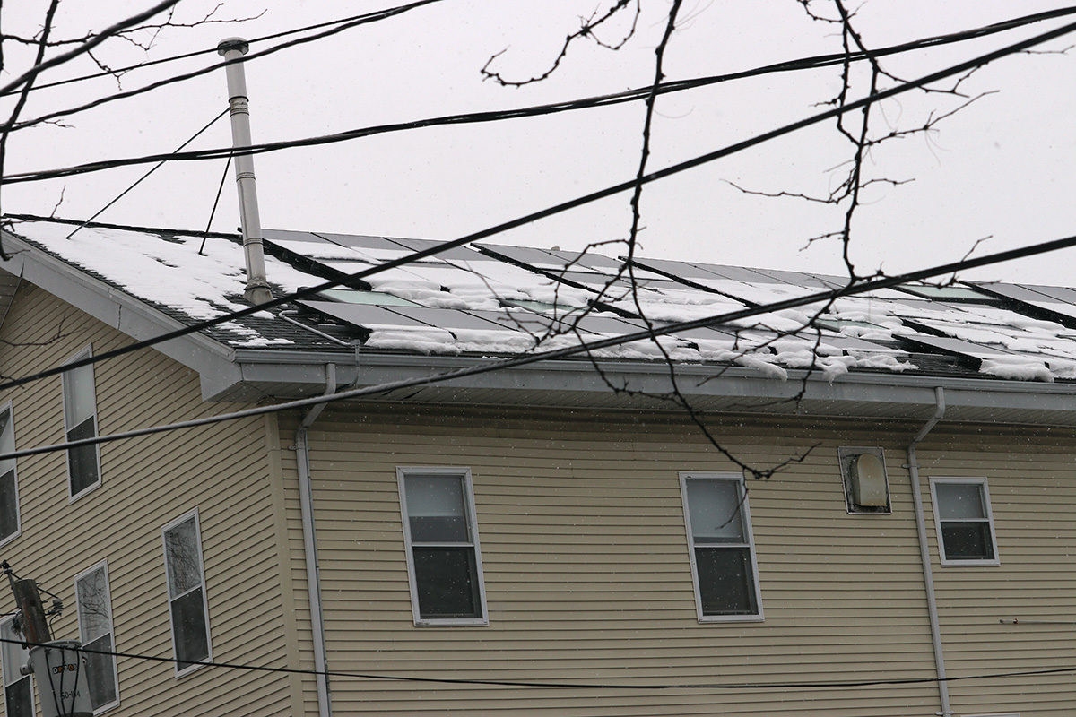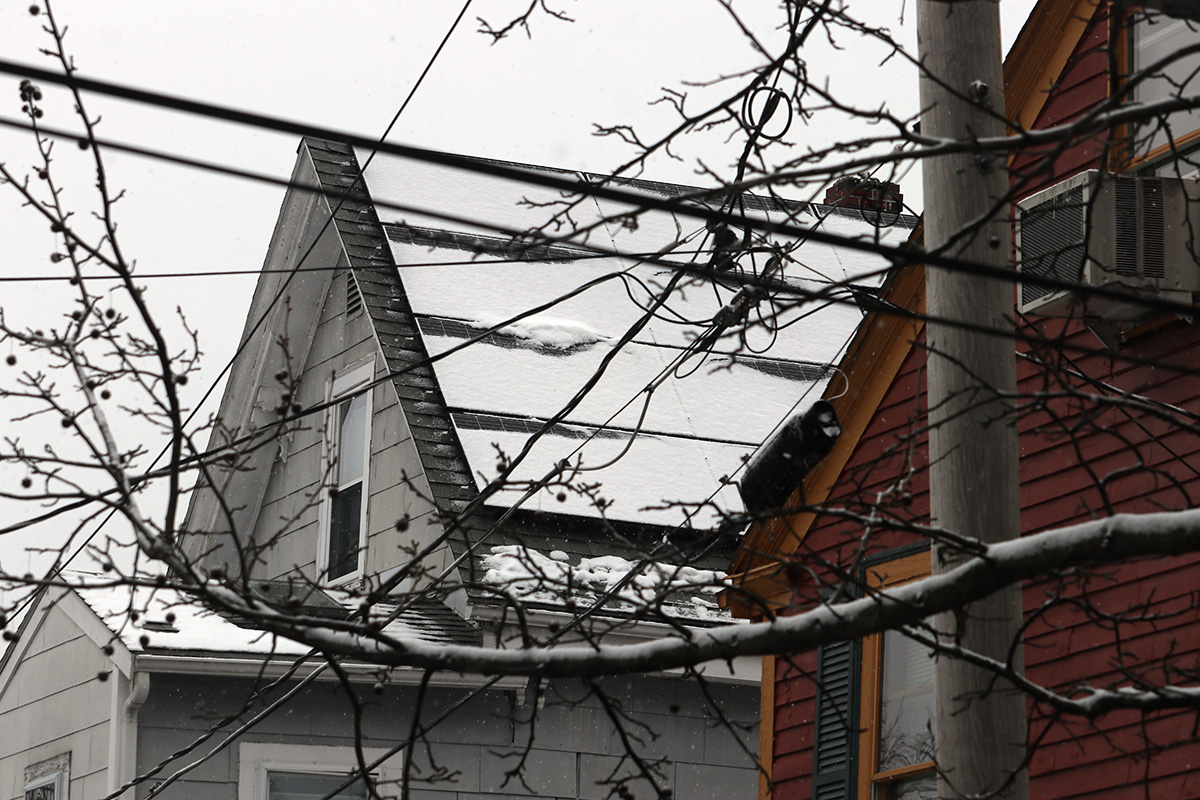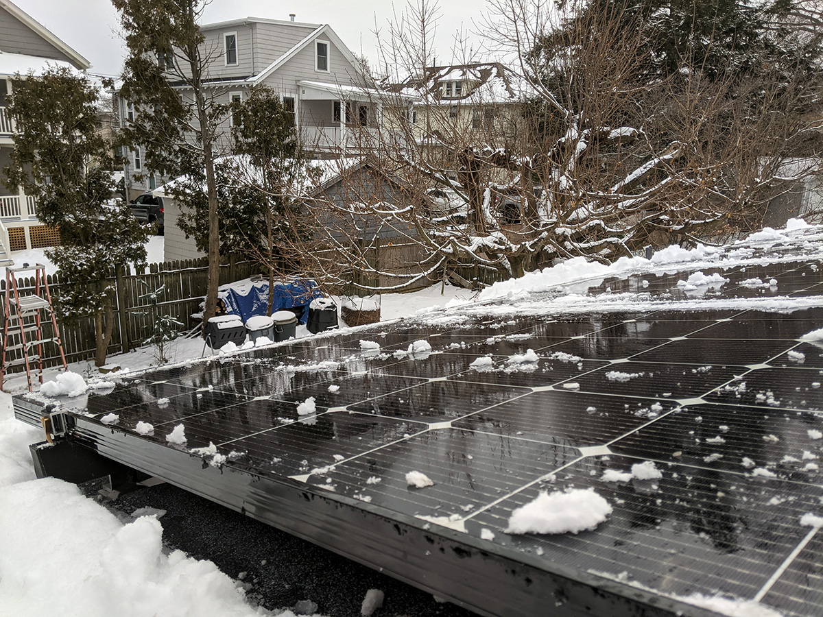 it snowed again today, second day in a row. there was only about an inch of accumulation, but enough to cover the solar panels. and with temperatures dropping into the single digits overnight and the teens on friday, any snow would freeze solid. there was no doubt i'd have to go back to belmont and clear the solar panels again.
