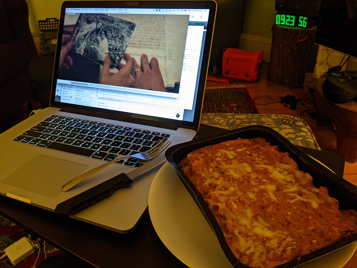 i baked one of the on-cor lasagnas in the oven around 8pm, didn't eat it until 9pm. by then i was pretty hungry, so it wasn't a surprise that i ate the whole thing (all 28 oz. of it, which according to the box is 4 servings). now i can make my own lasagna, but it never tastes as good as the commercial frozen variety. maybe i don't add enough salt, maybe it's something else, but whatever the reason, store-bought always seem to taste better. my preferred frozen lasagna is stouffer's, i don't ever remembering having the on-cor one before. it was a little runny but not bad. plus you can't beat that price, just $2.50 for nearly 2 lbs. worth of proteins and carbs. i ate while watching an episode of the serpent from my computer. afterwards i was in a food coma, just like yesterday.