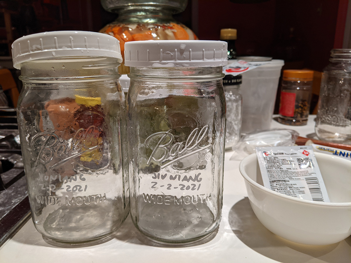 my parents already ate at the cafe so i was the only one eating. after i finished, my father gave me a ride back to cambridge. he took my last jar of jiu niang with him after my mother asked me to make more.