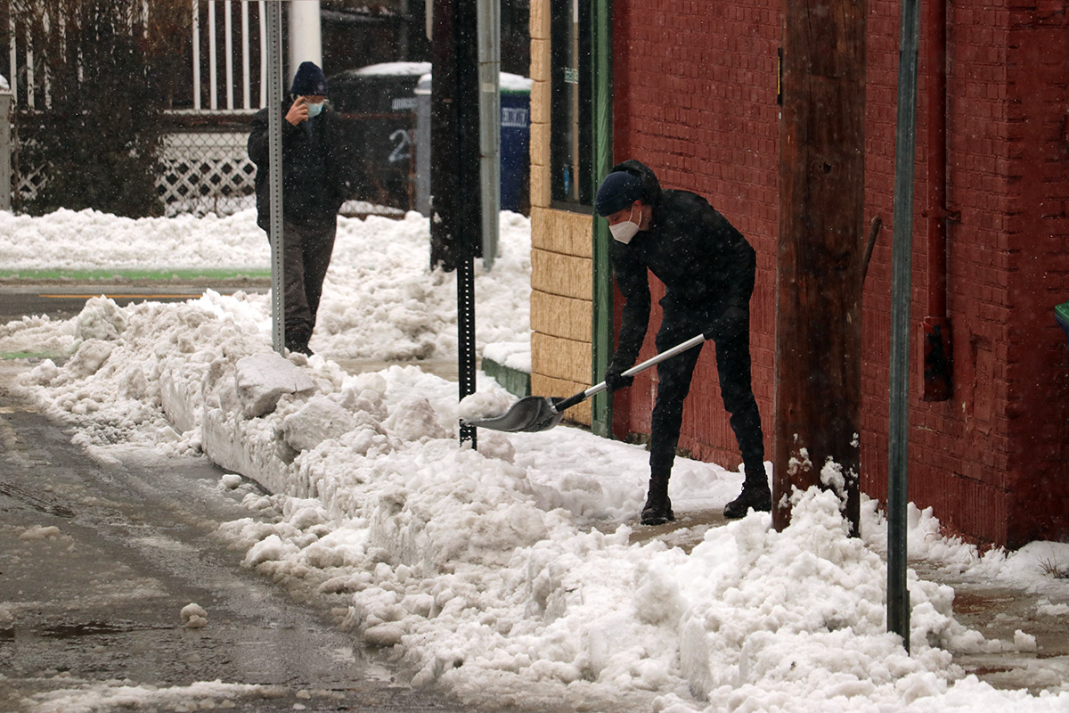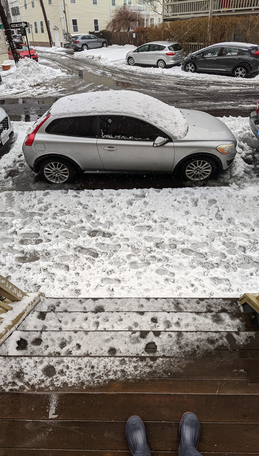 the first thing i did this morning was to go outside and shovel the sidewalk. there was nothing left but trampled slush. it was easy to remove but heavy since it was wet snow. paul came out of the house to mail some letters and to dig out his car. i saw my new next door neighbor shoveling as well and introduced myself. his name is daniel and i'm guessing in his 20's from the skinny jeans he was wearing. besides the sidewalk, i also carved out a path onto the street. i left the backyard for paul to clean up.