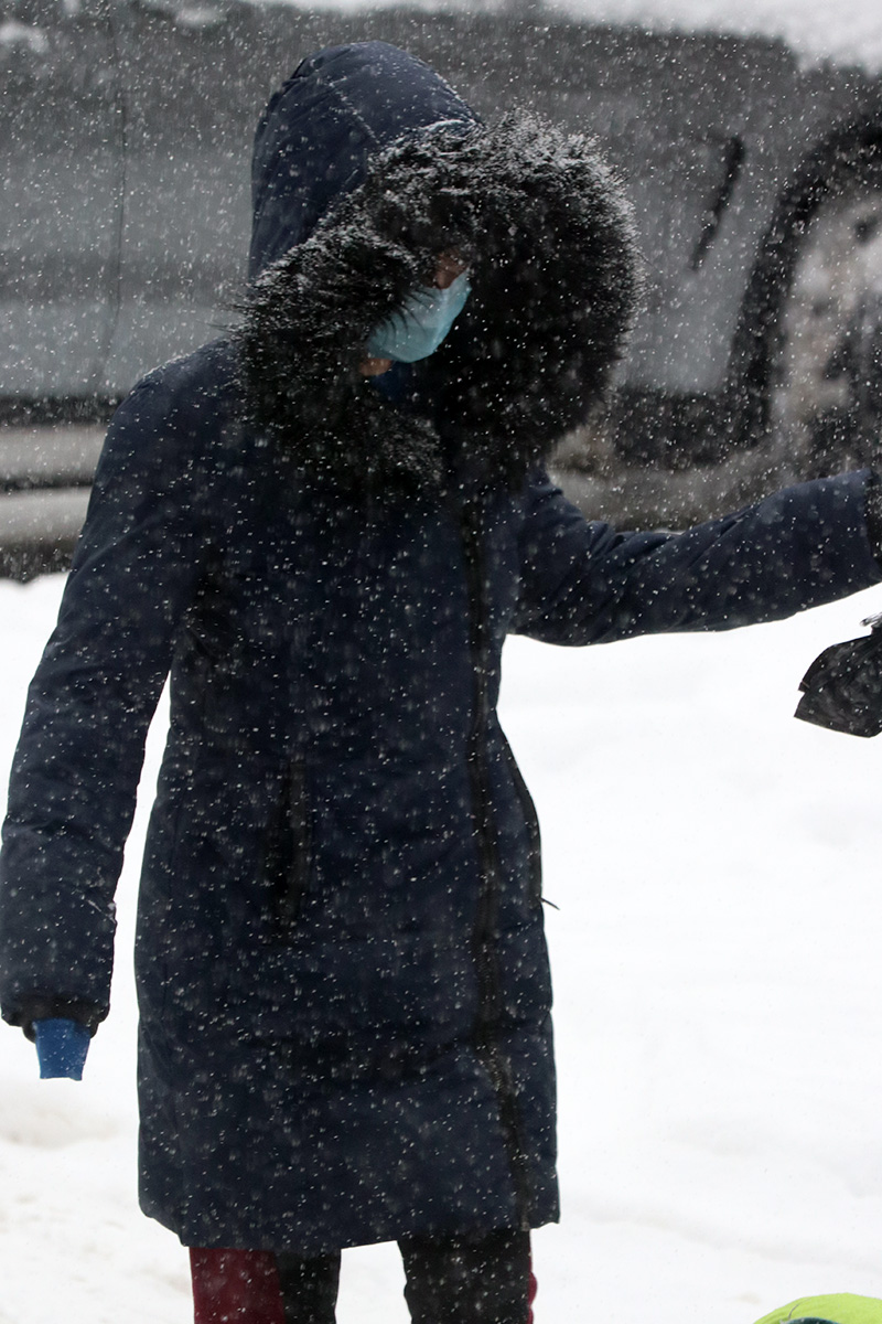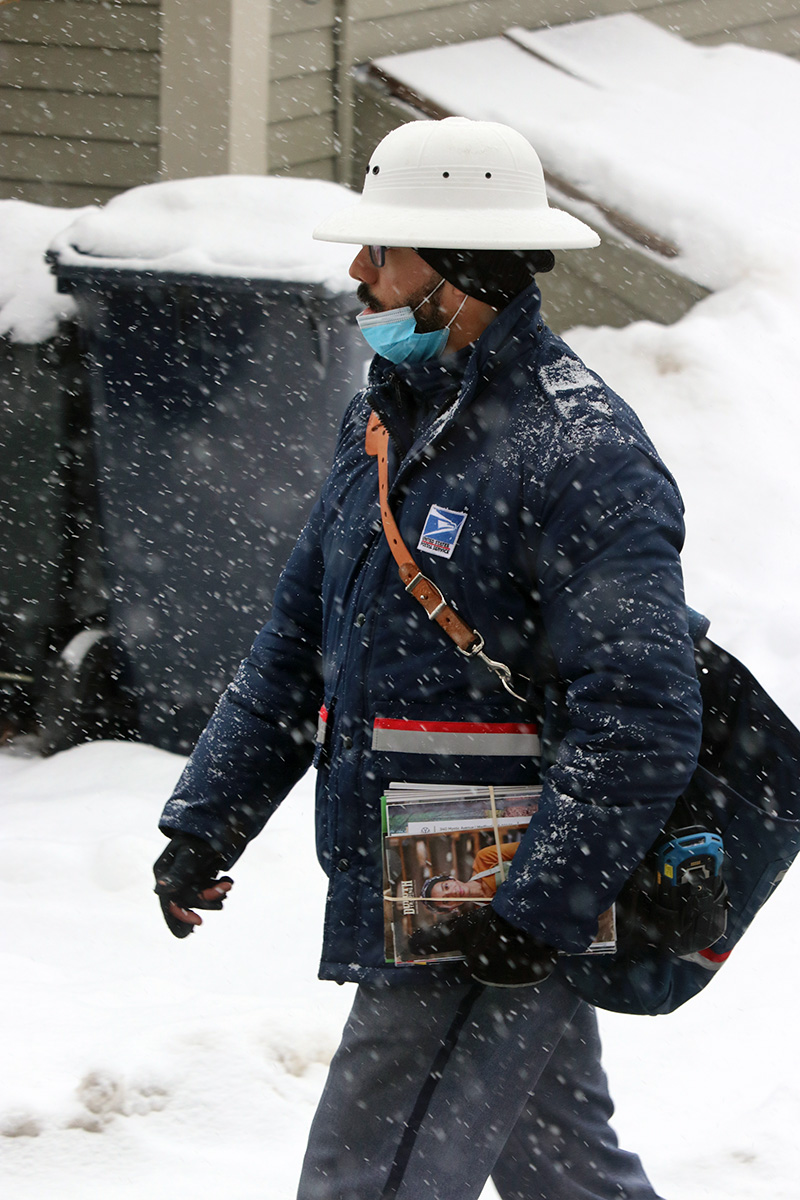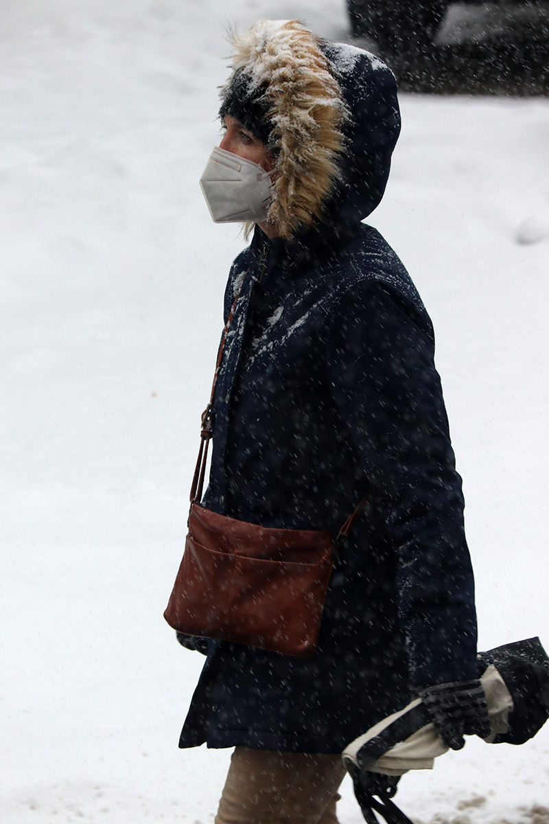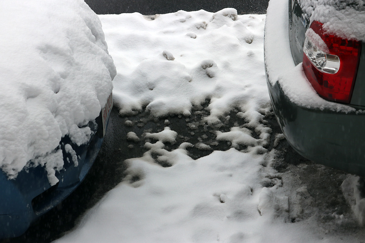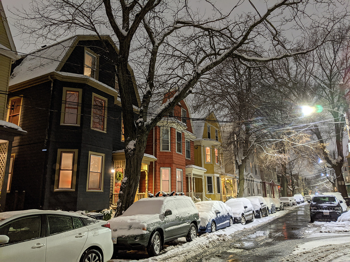 at 6pm i went outside to do some shoveling when the snow seemed like it'd let up. there wasn't much snow (1-2") and what little there was was dry and fluffy, like shoveling powder, hard to pile up. i also brought out the trash bins.