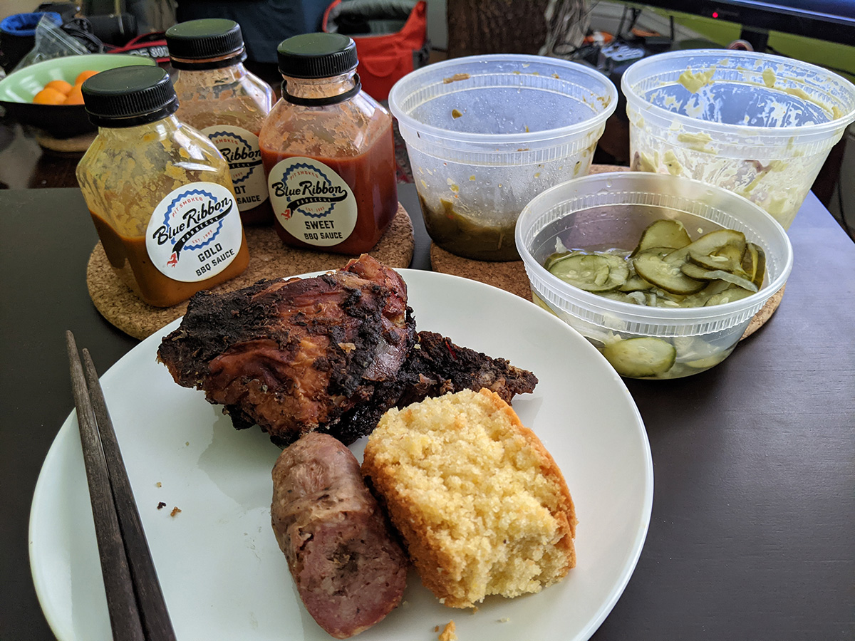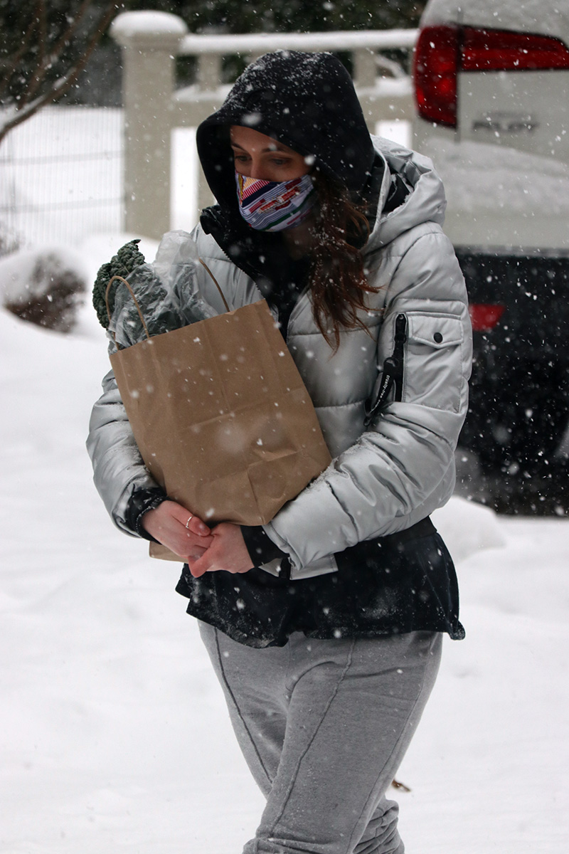 for dinner i finished the leftover barbecue and had some orange slices. later in the evening when i took out the trash, i also did a bit more shoveling and sprinkled some salt on the sidewalk.